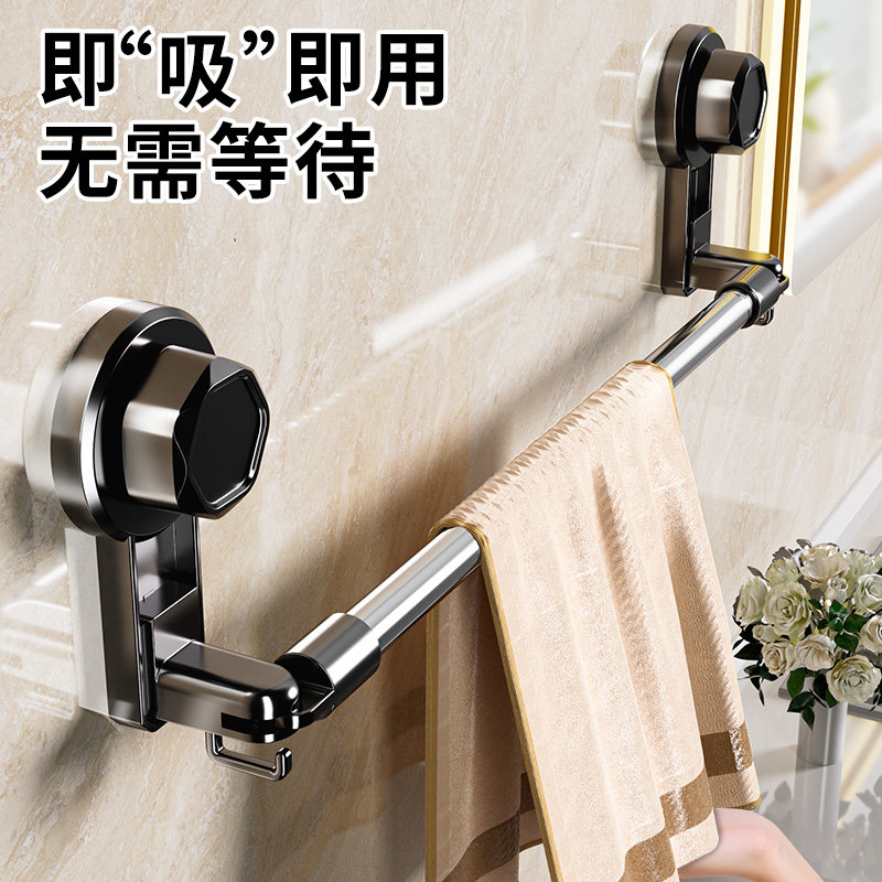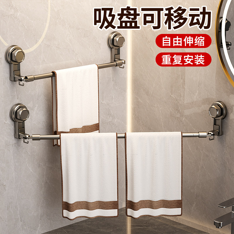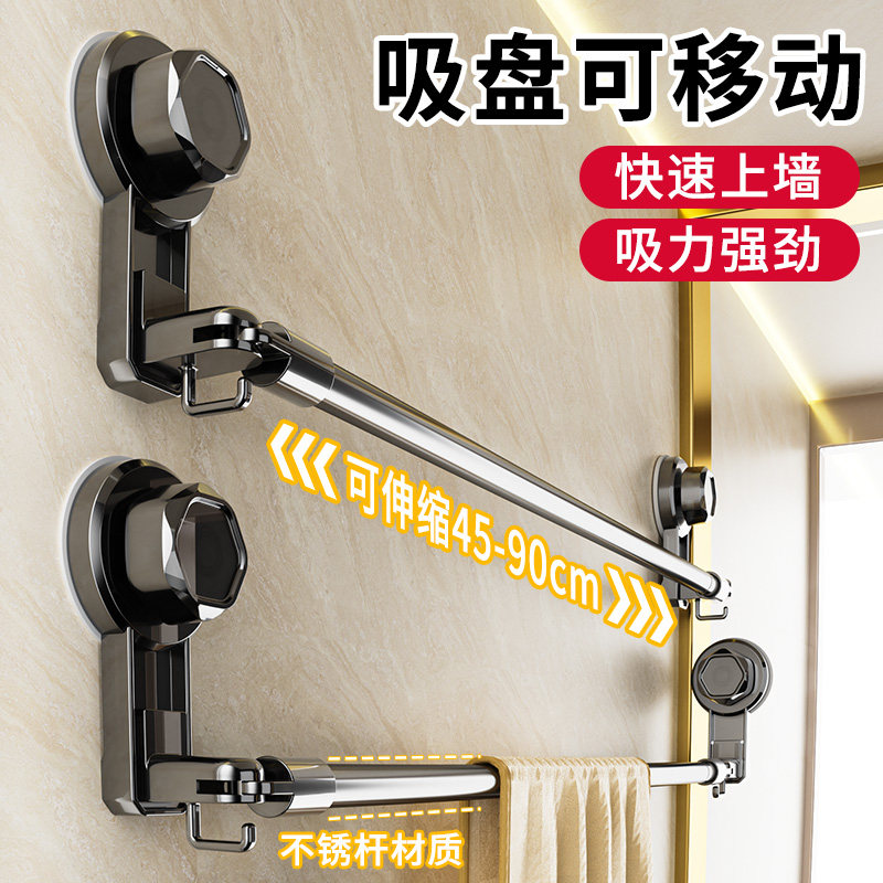吸盘毛巾架卫生间免打孔浴室伸缩拖鞋杆置物架洗手间浴巾收纳挂架