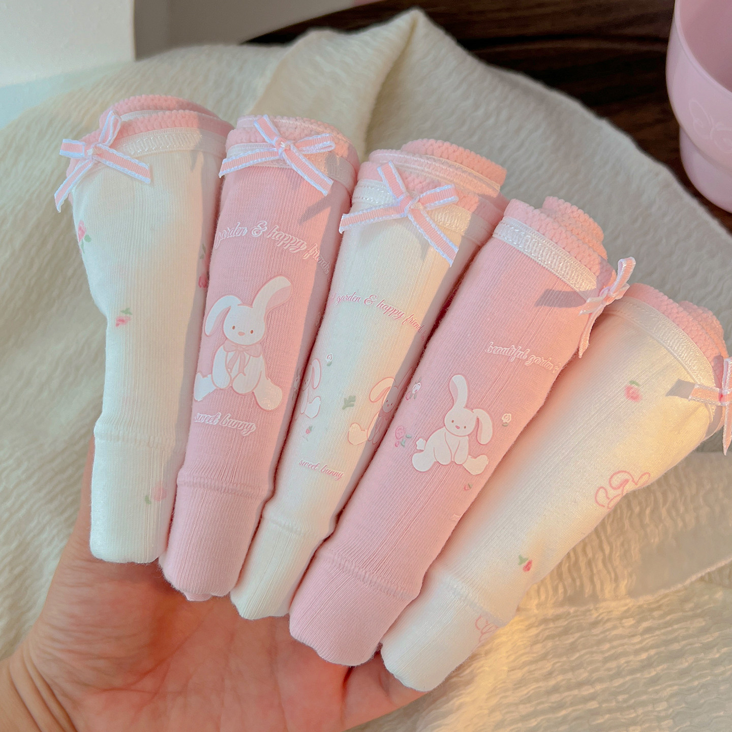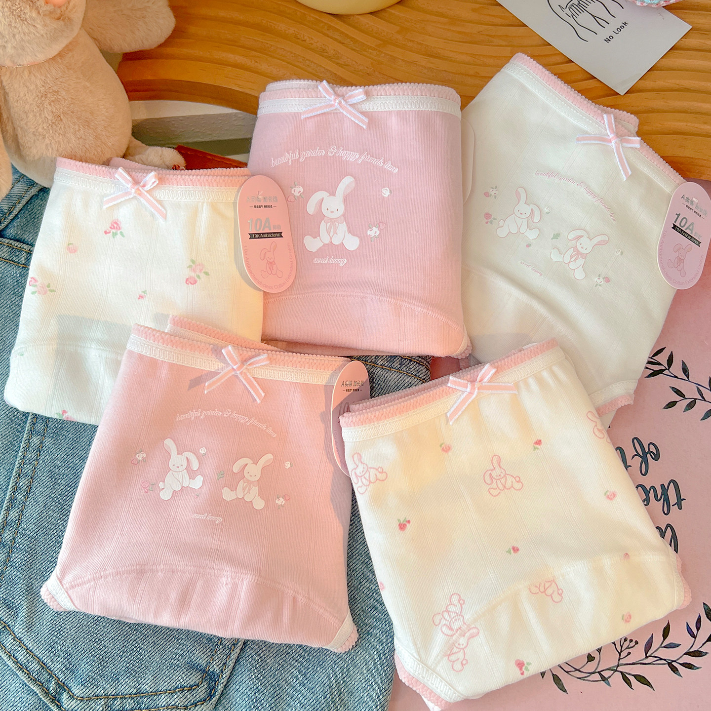 兔百事~内裤女a类纯棉裆抗菌加长裆甜美可爱粉色少女大码新款