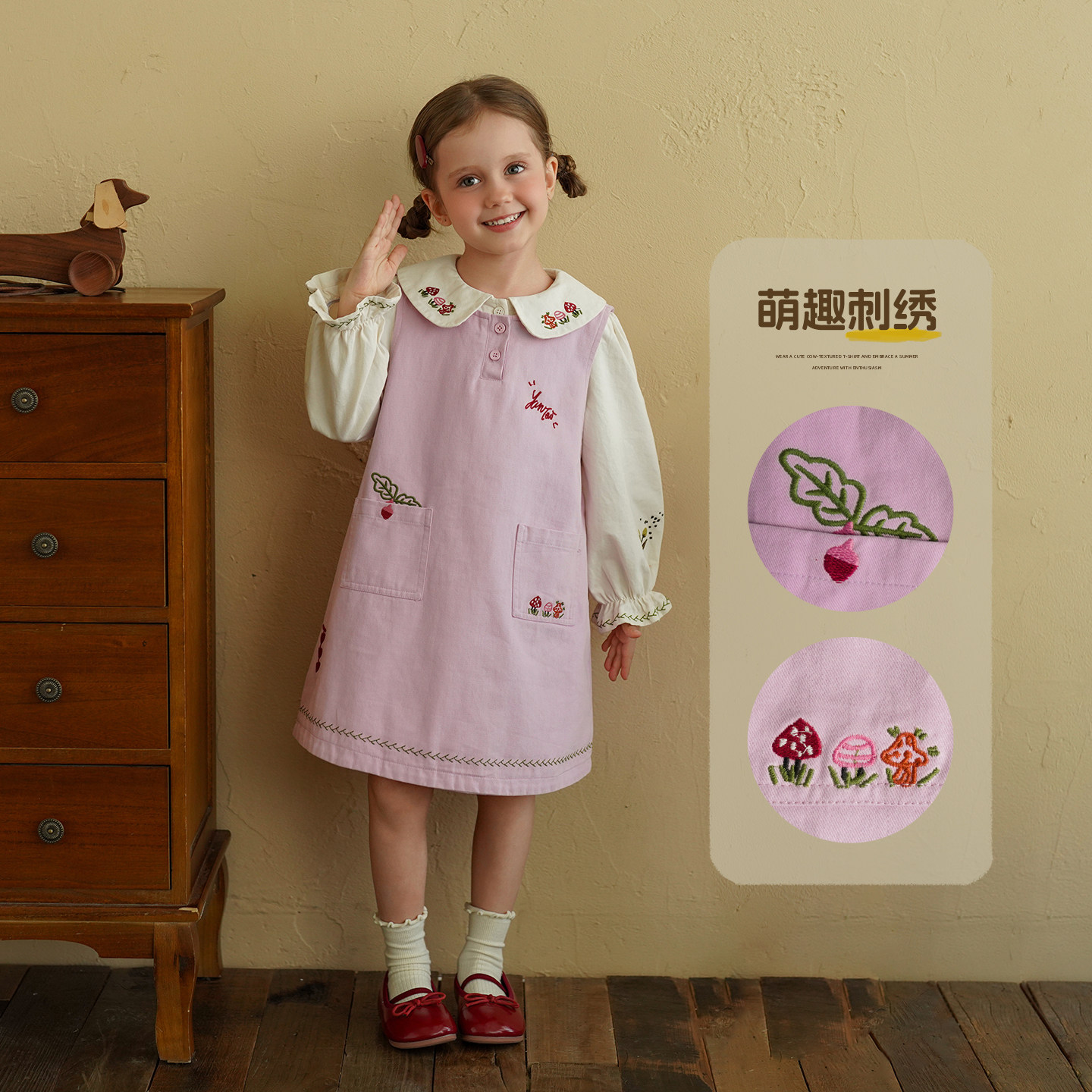 砚台家童装女童纯棉粉色裙子春秋新款儿童无袖背心裙中小童A字裙