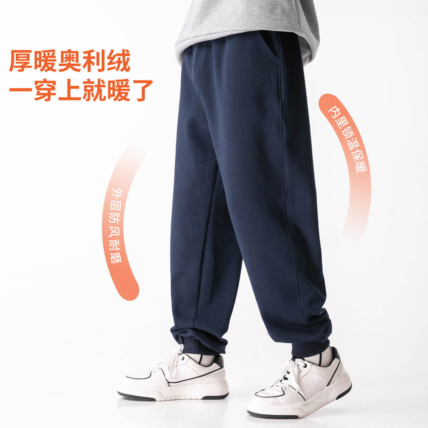 胖男童裤子加绒加厚学生藏青色校服裤初中生运动裤胖童装加肥加大