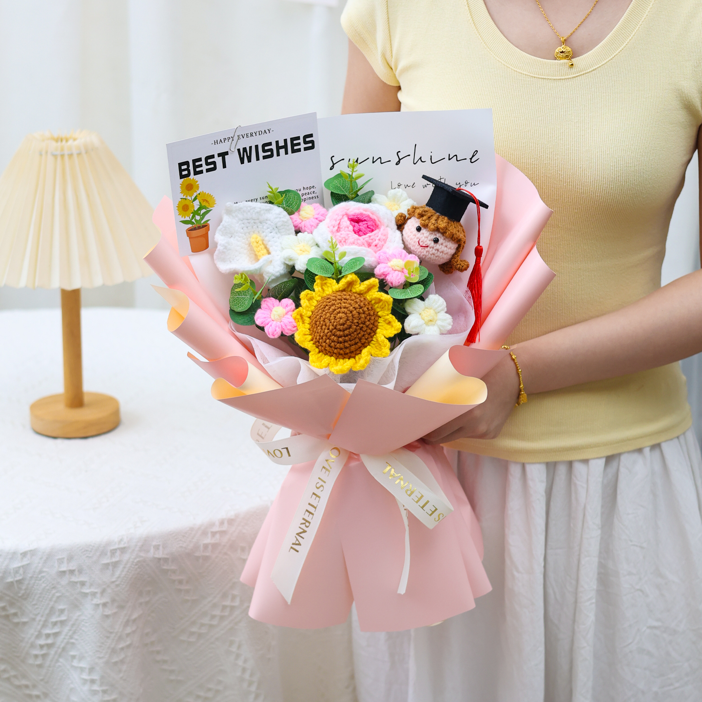 成品针织混搭仿真花毕业生日礼物