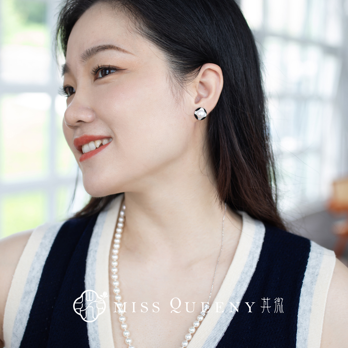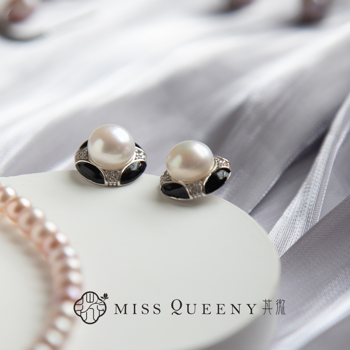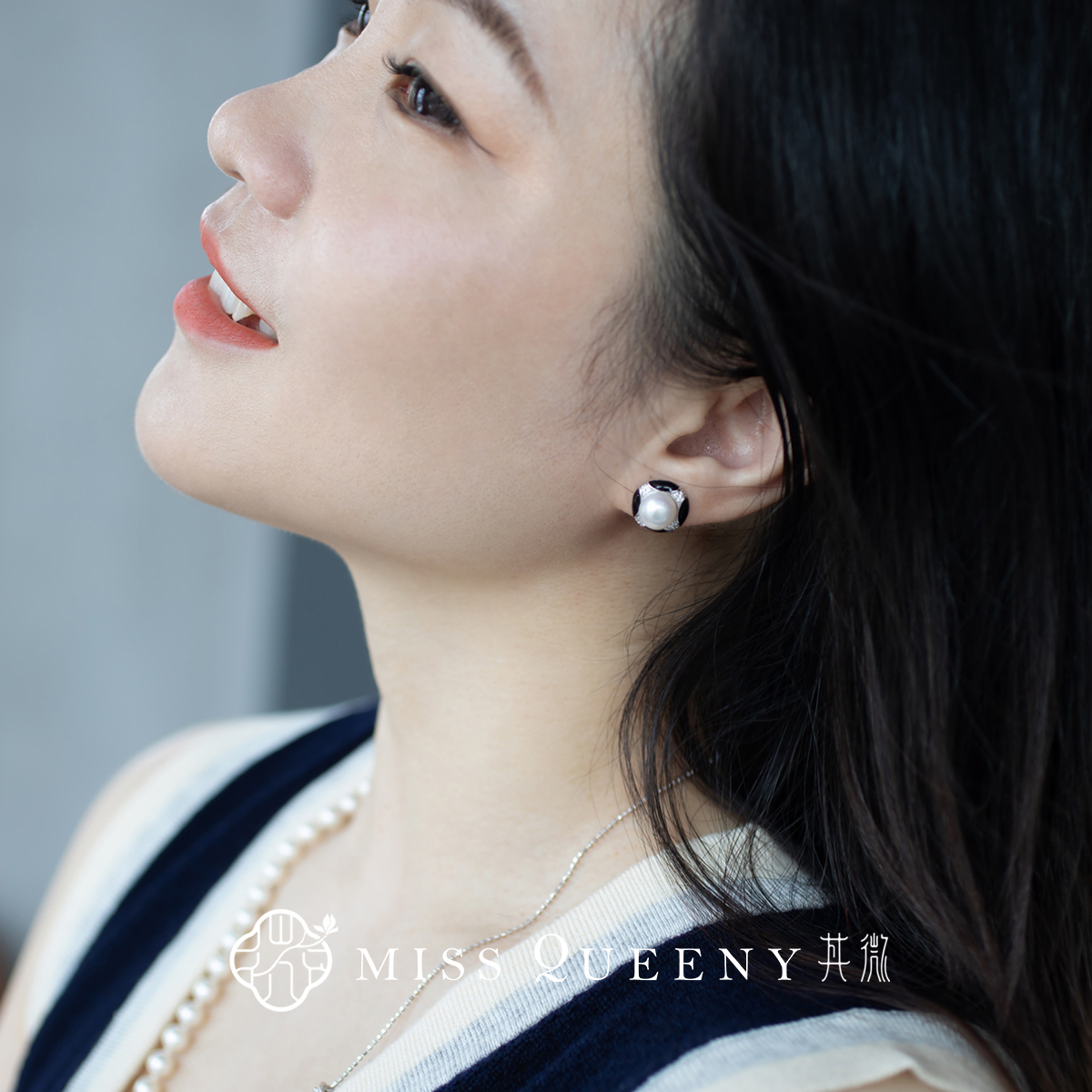 MissQueeny其微|夜幕·黑珐琅淡水珍珠耳钉925纯银小香风精致百搭
