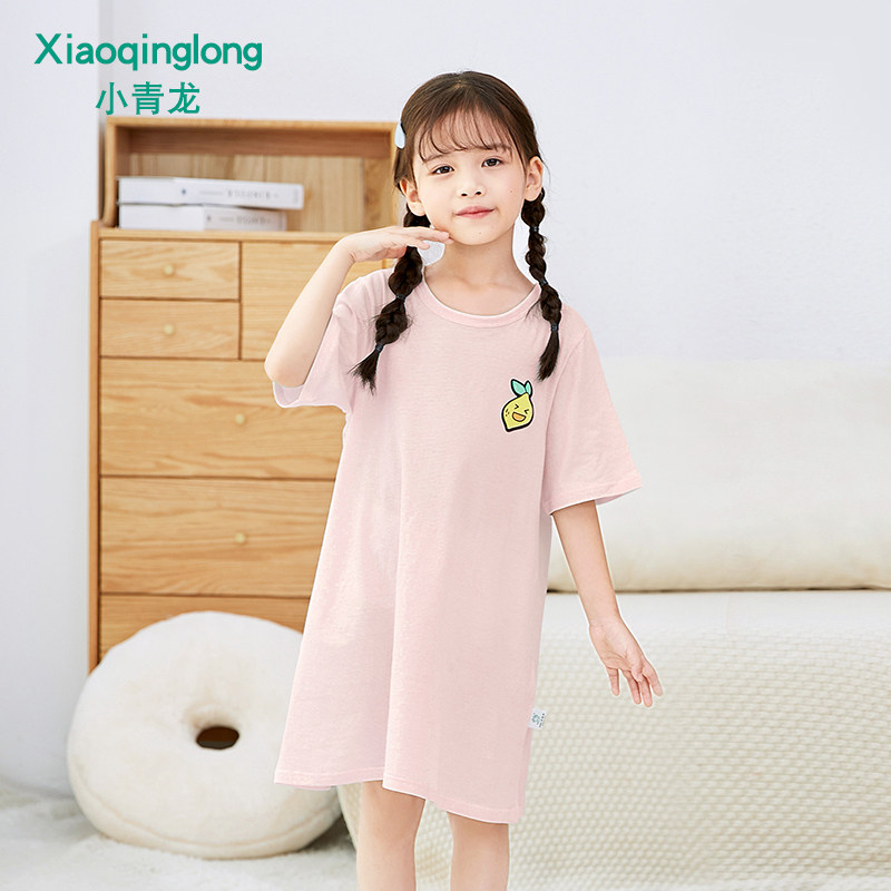 小青龙纯棉女童睡裙夏季透气儿童短袖小女孩睡衣中大童亲子家居服
