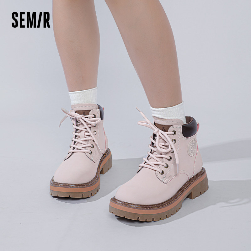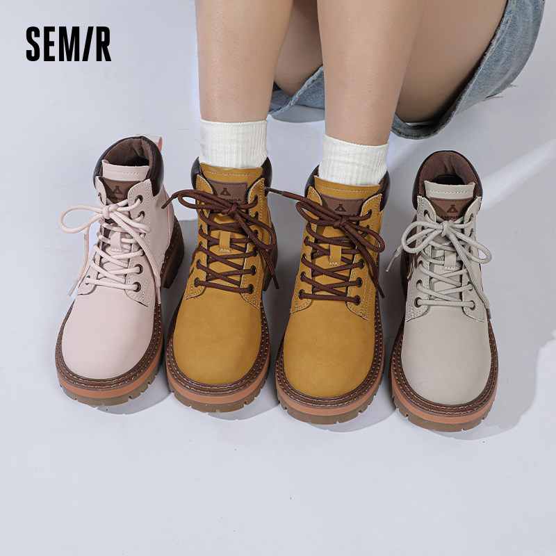 Semir酷飒风女鞋马丁靴女2025新款秋冬户外登山鞋小个子厚底短靴