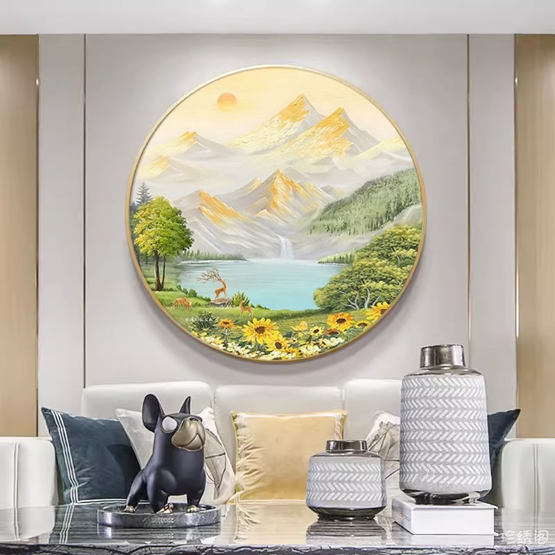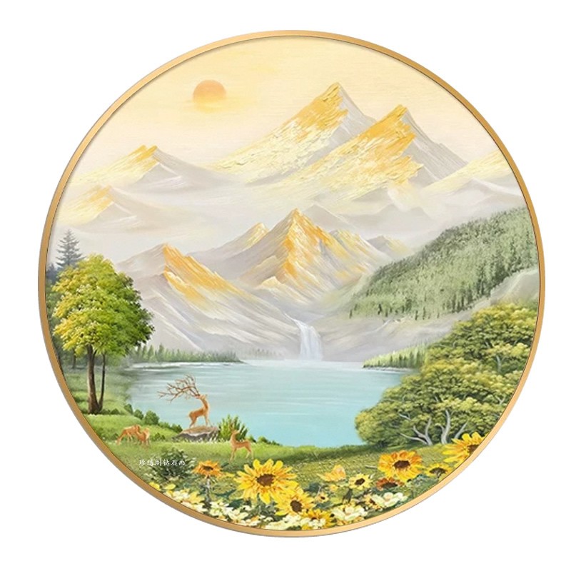 2025新款日照金山钻石画圆形带框山水风景餐厅粘贴钻石十字绣客厅