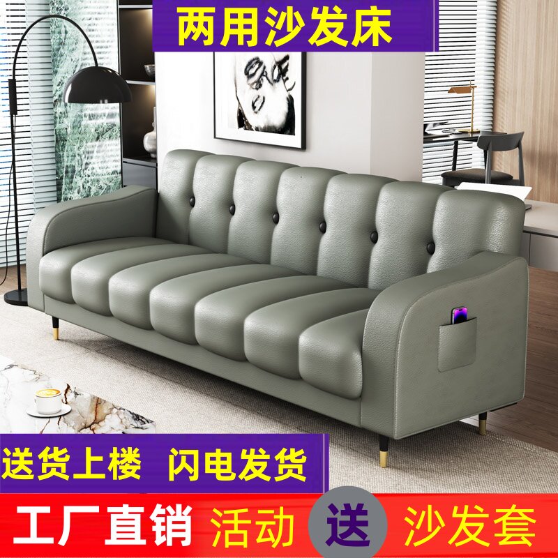 简约折叠沙发床两用客厅轻奢现代北欧小户型多功能出租房皮艺沙发