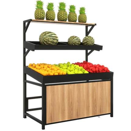 生鲜超市水果货架展示架蔬菜架子水果店摆果框钢木果蔬置物架商用