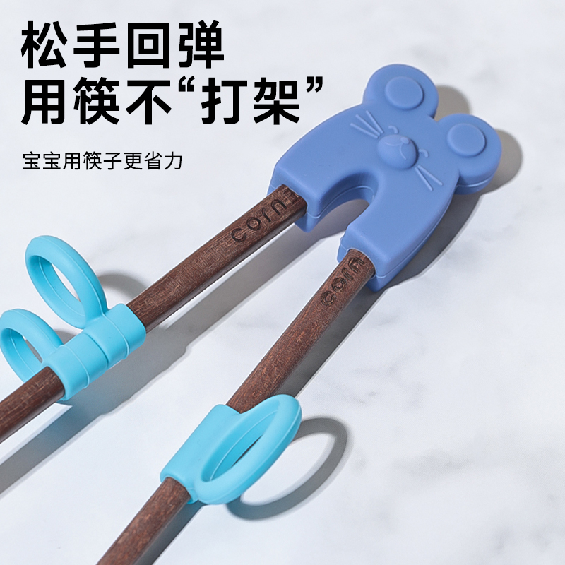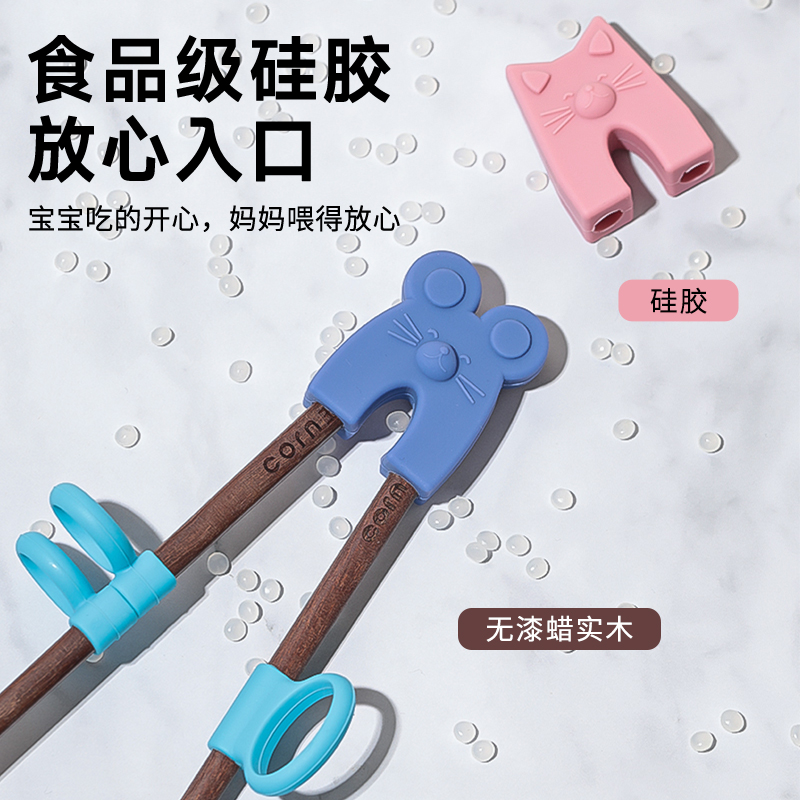 玉米儿童指环训练筷3-6岁筷子宝宝专用辅助矫正器木质学习训练筷