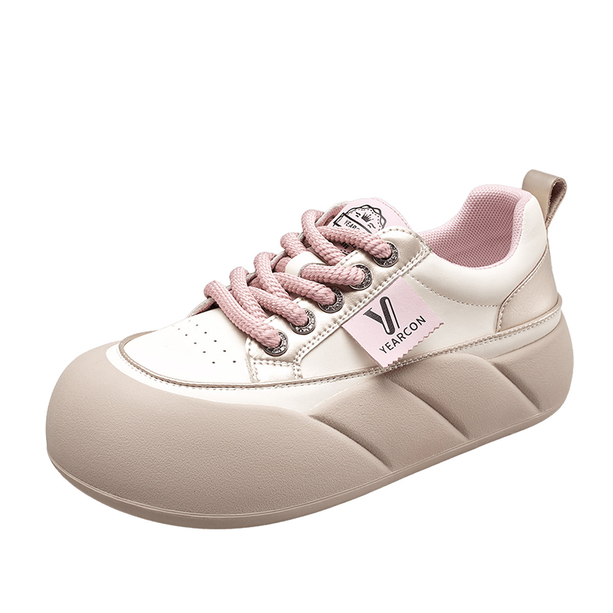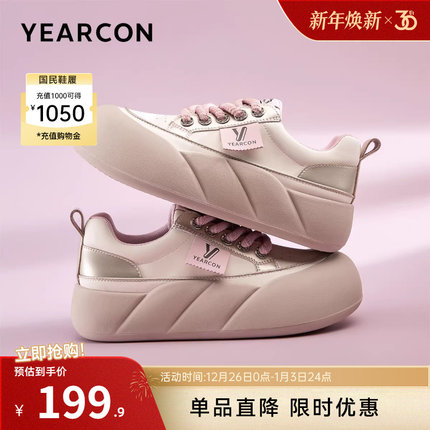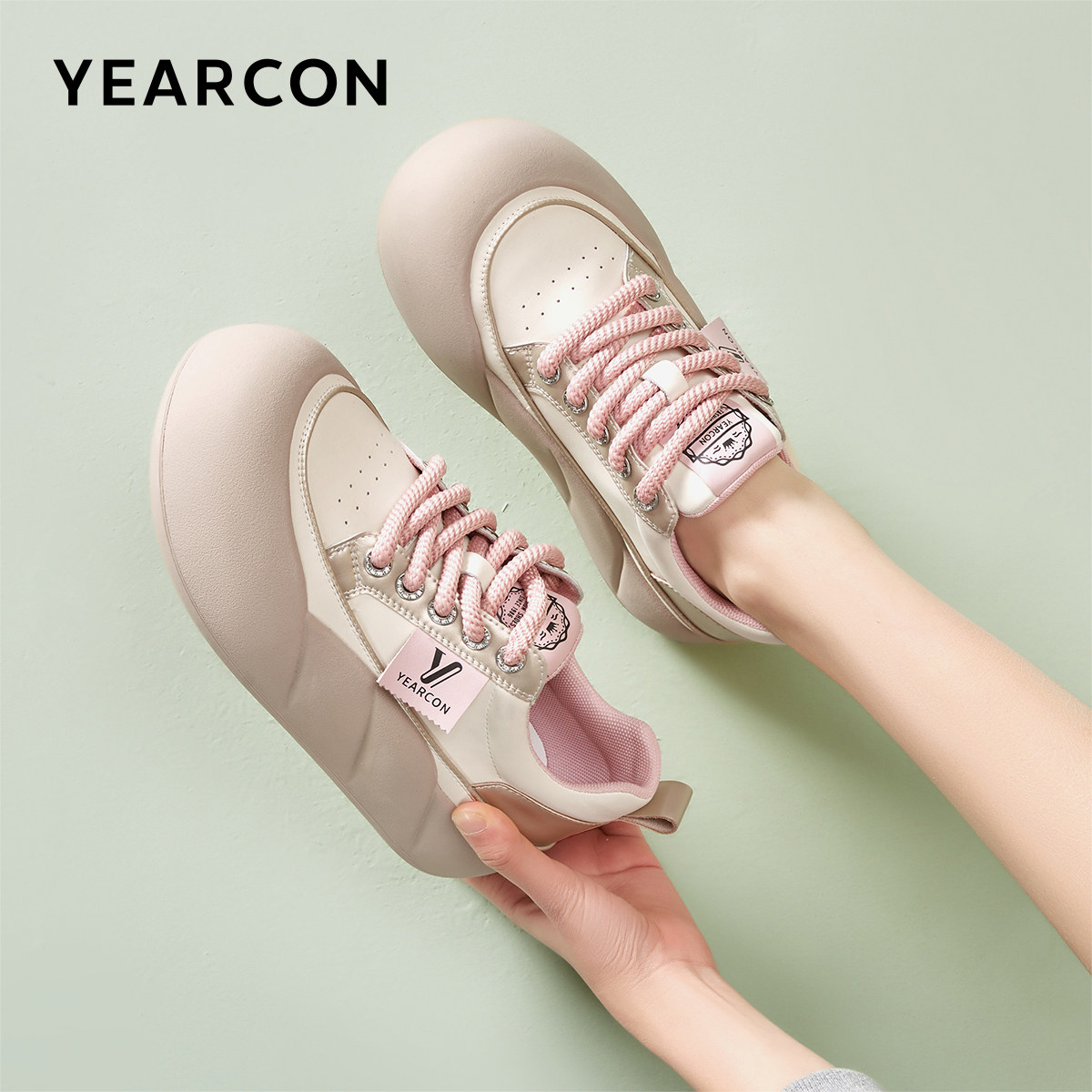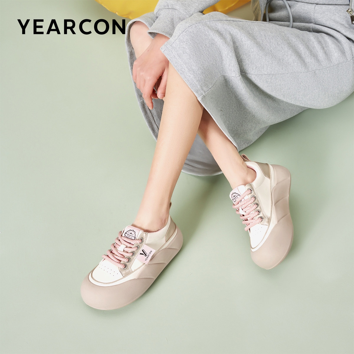 意尔康女鞋春秋季面包鞋厚底休闲板鞋女士英伦风时尚平底单鞋
