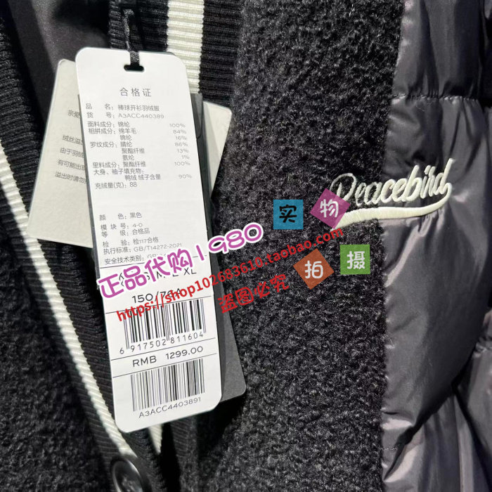 A3ACC4403 太平鸟女装2022冬装新款棒球开衫羽绒服 A3ACC440389