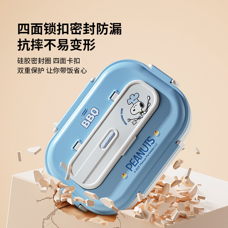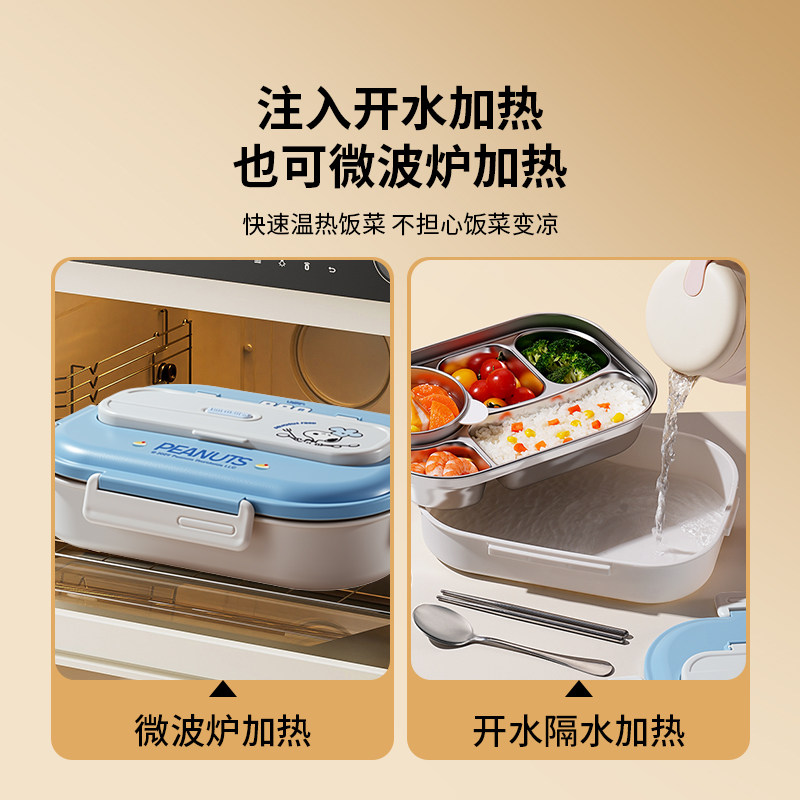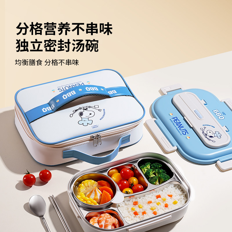 史努比保温饭盒初中小学生儿童上学专用一年级男孩分格不锈钢餐盒