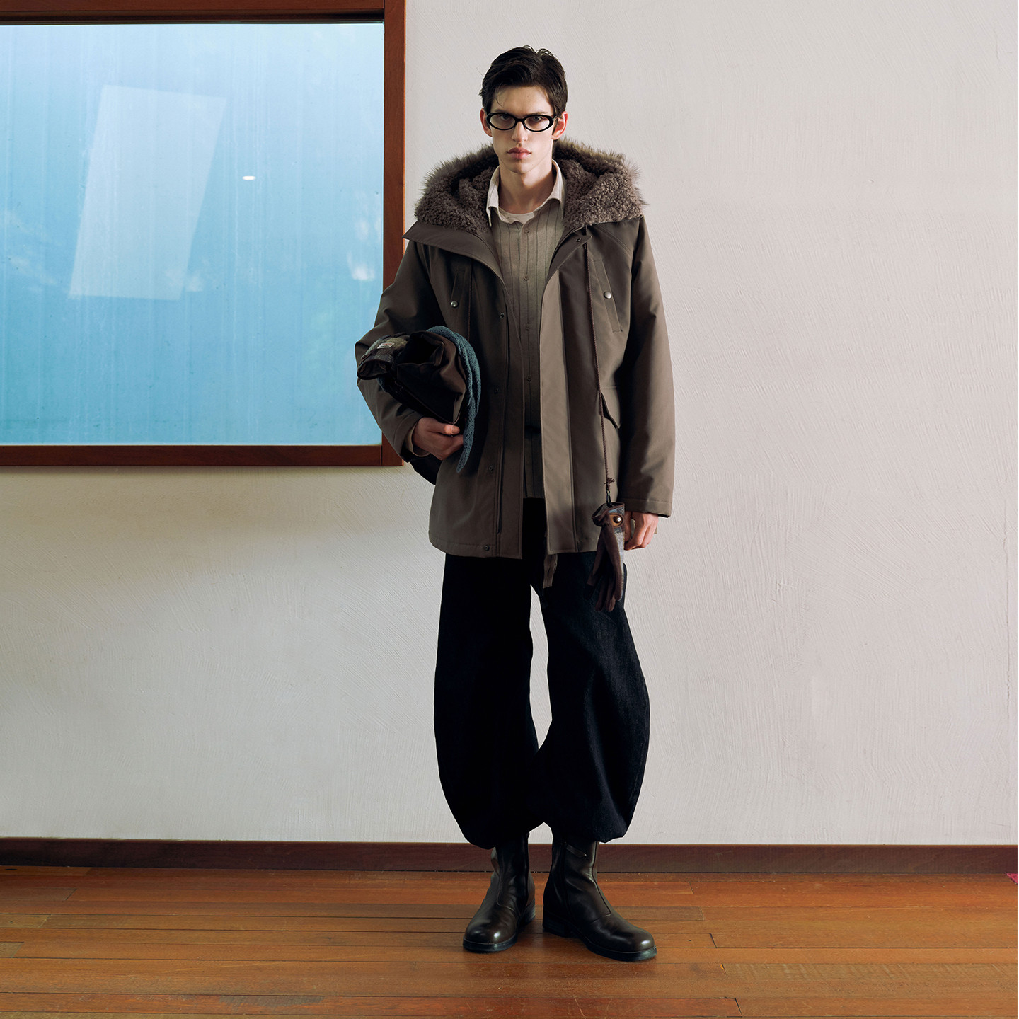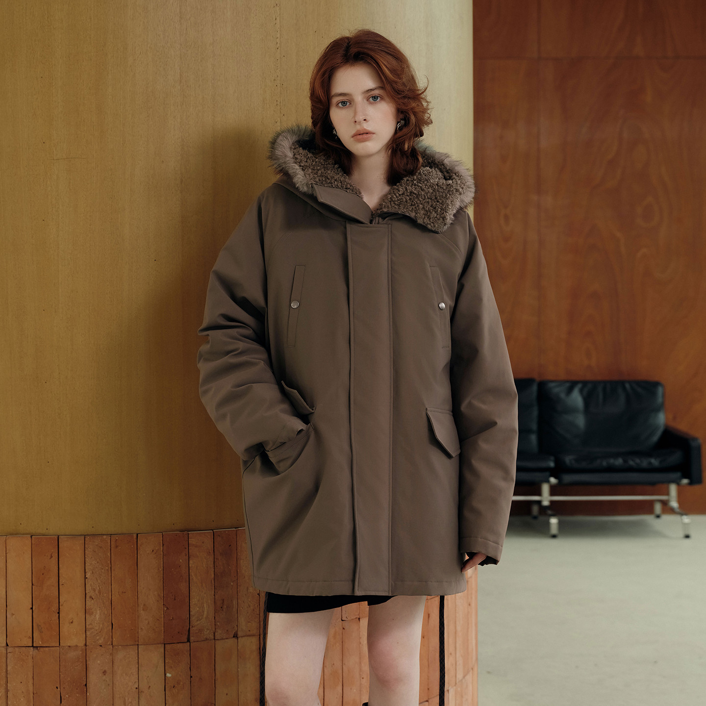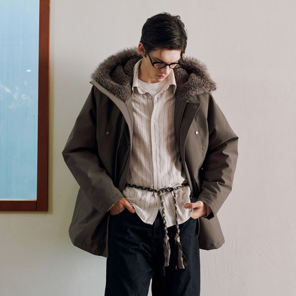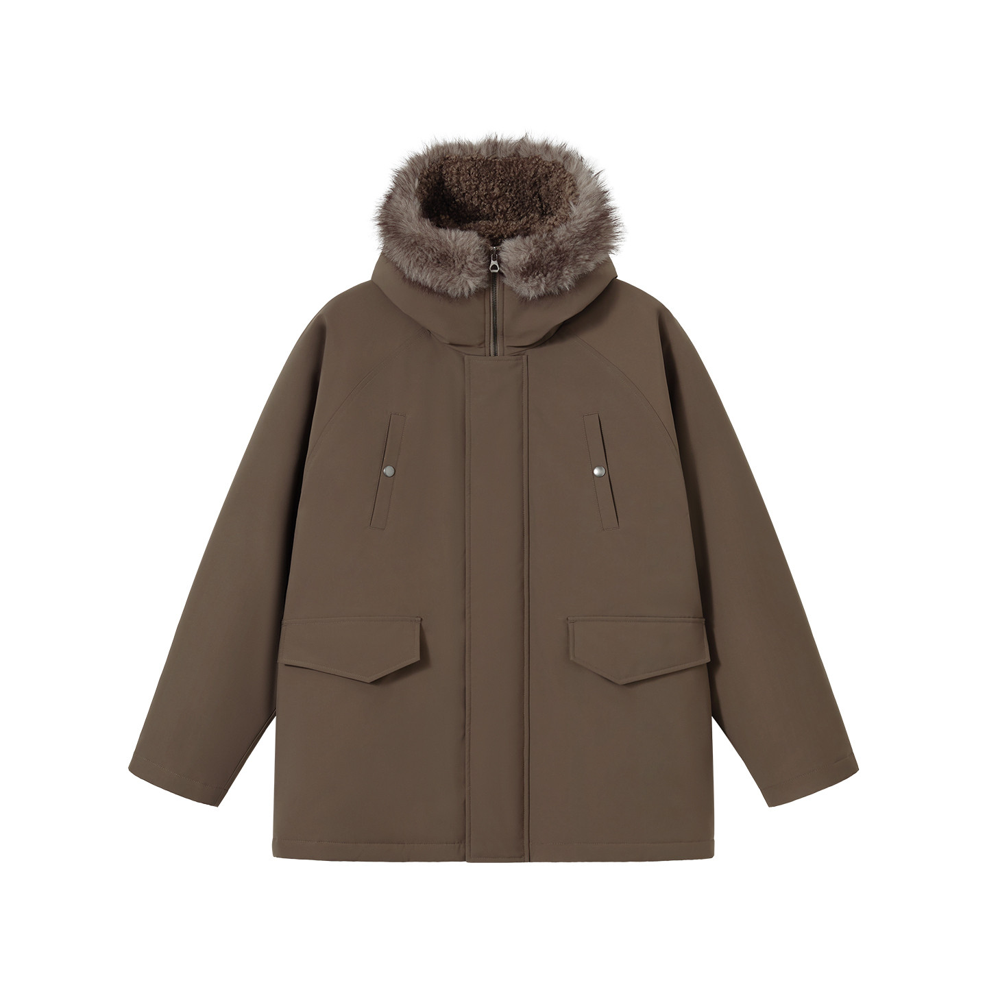 PSO Brand男装女装【N3】美式复古毛领中长款棕色棉服外套女款秋