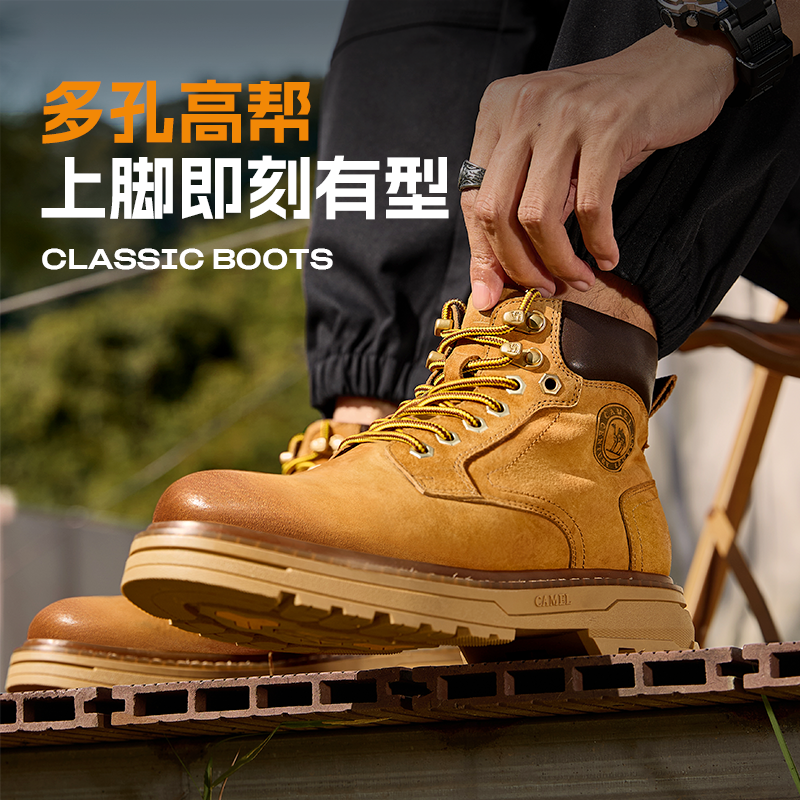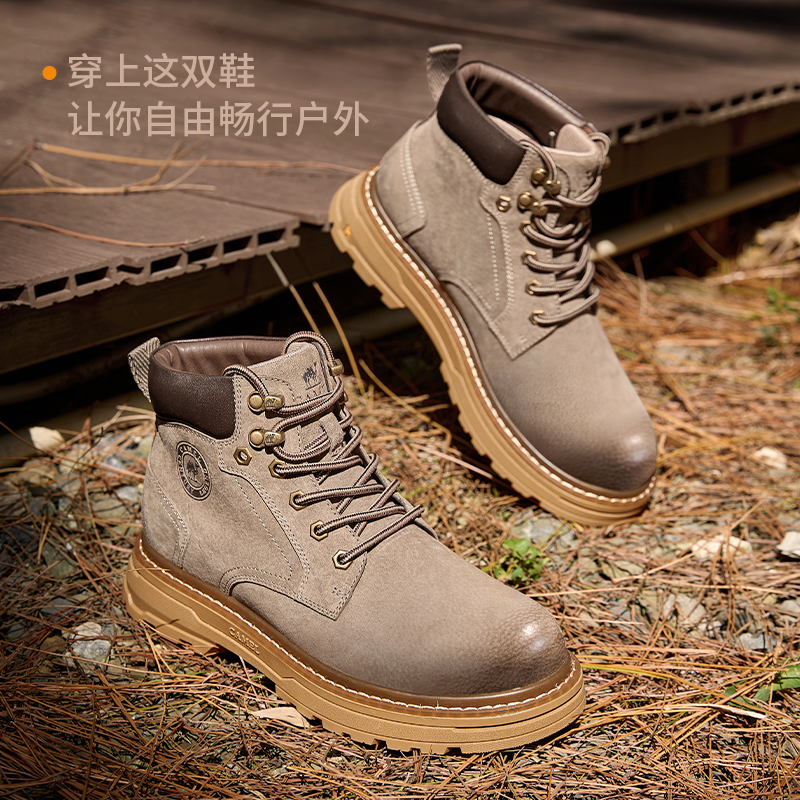【王俊凯同款】骆驼金甲2025秋冬新款马丁靴加绒防滑增高大黄靴男