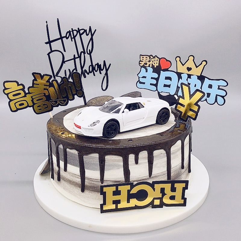 保时捷跑车蛋糕装饰摆件兰博基尼大牛暴富男生生日蛋糕烘焙装扮