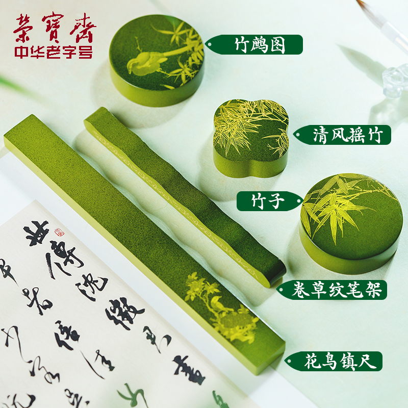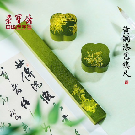 荣宝斋彩漆镇纸黄铜实心镇尺压纸新中式国画书法镇尺笔搁文房雅器多功能创意铜镇纸压书条文房四宝书房摆件