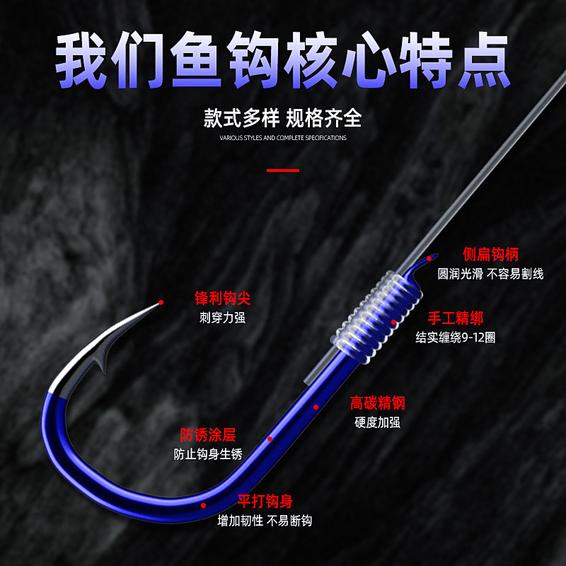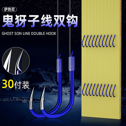 伊势尼鱼钩绑好成品子线双钩有倒刺全套鬼伢鱼线套装野钓大物钩
