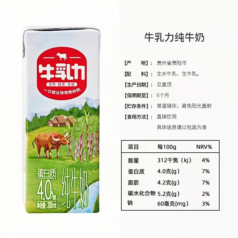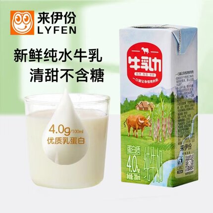 来伊份牛乳力纯牛奶200ml*12盒/箱生水牛乳钙蛋白整箱营养早餐奶