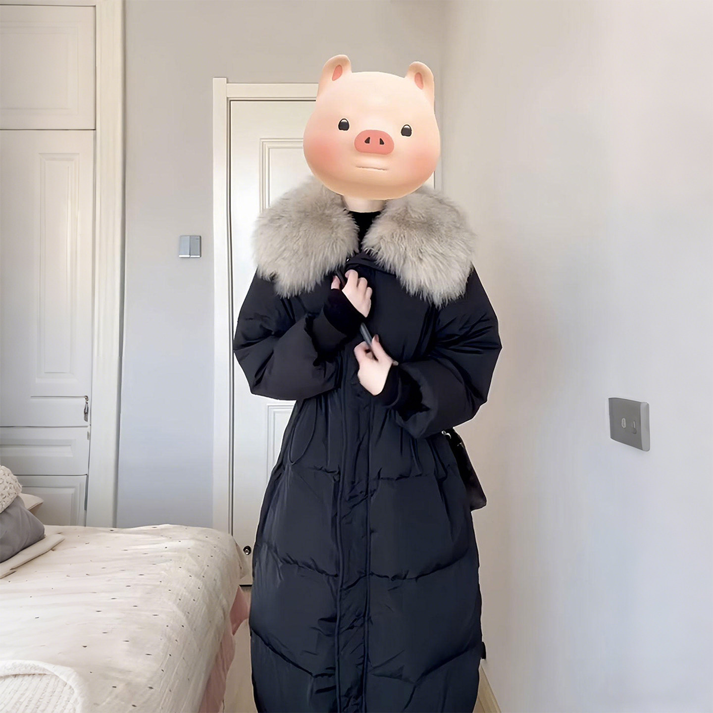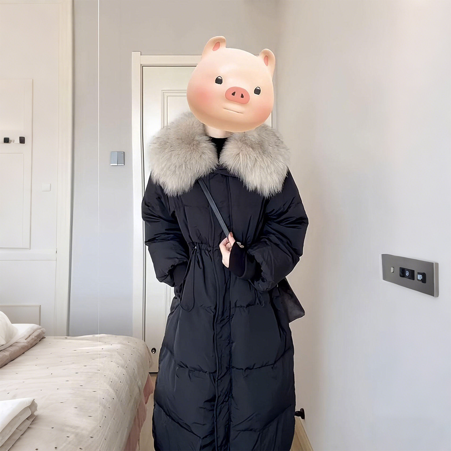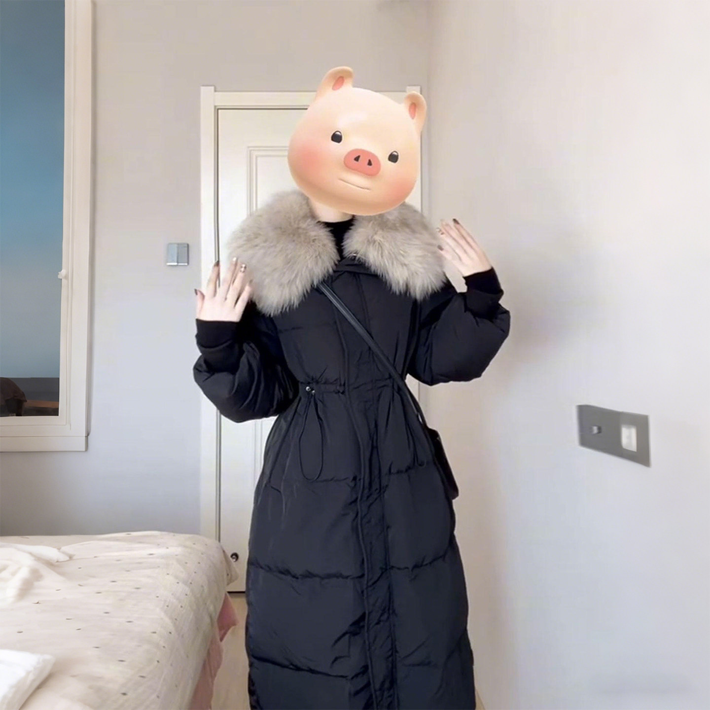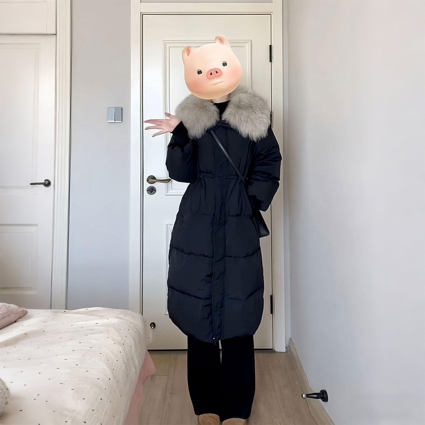 大码女装胖mm新款黑色长款棉服女高级感百搭毛领收腰保暖棉衣外套