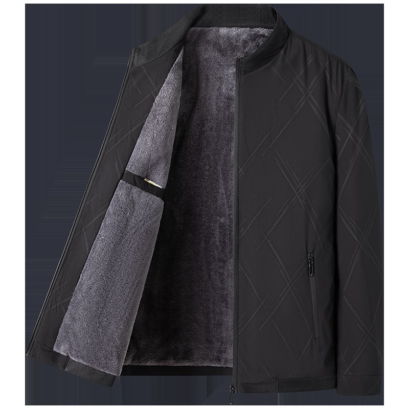 秋冬爸爸装加绒加厚夹克衫中年立领宽松外套老人薄棉衣中老年冬装