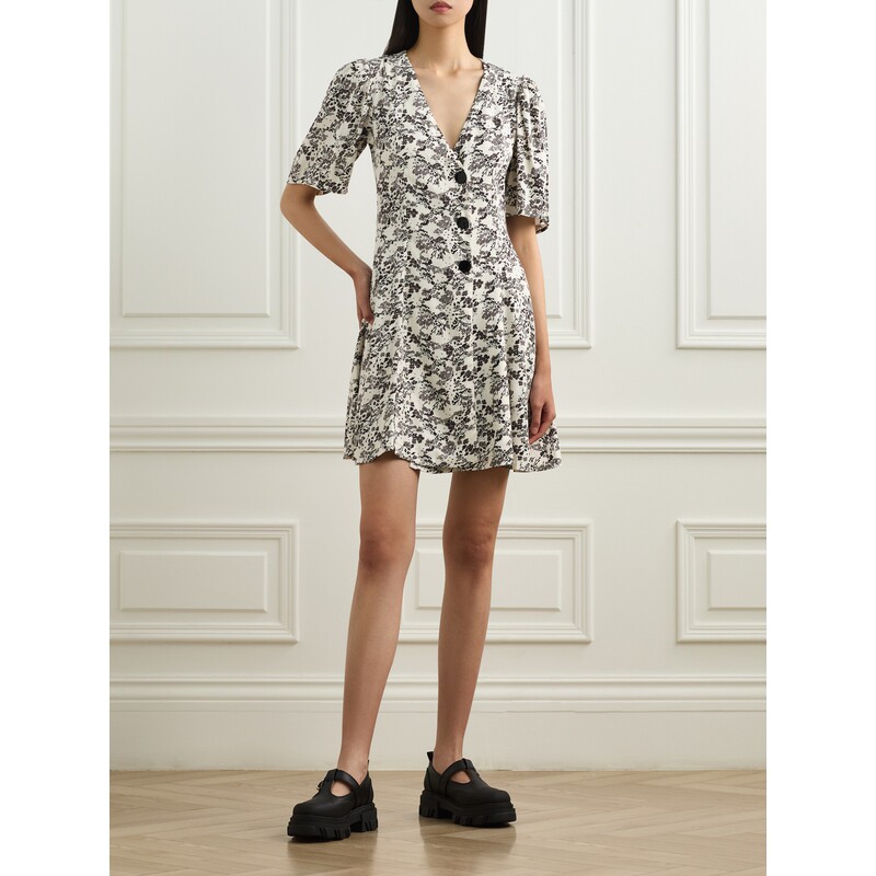 【38焕新周】GANNI夏季女花卉印花斜纹布海岛度假连衣裙