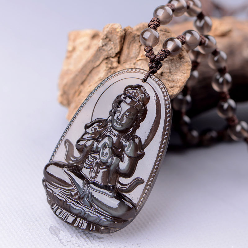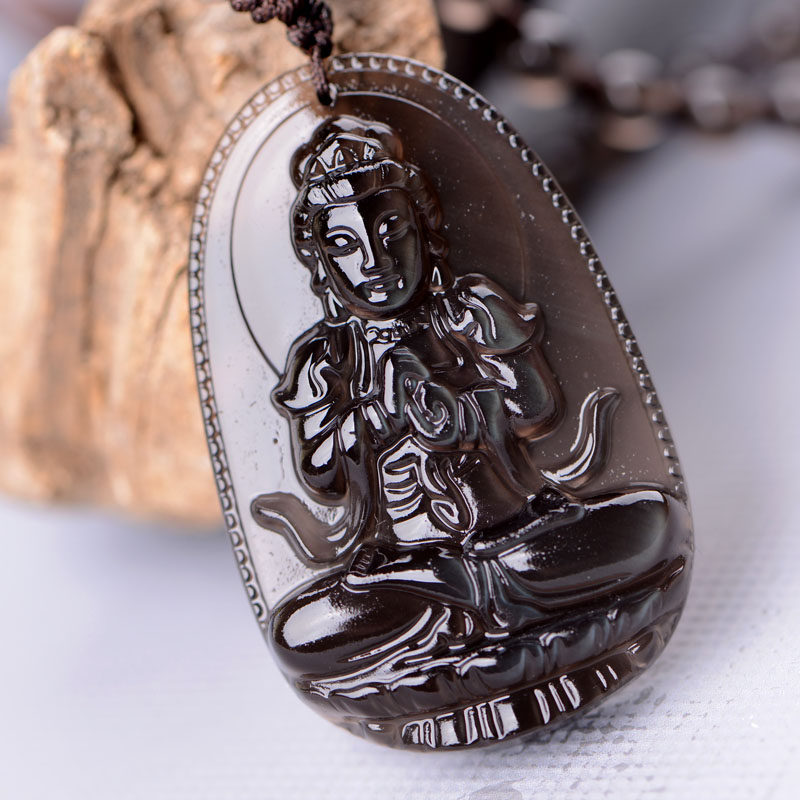 宫妃冰种彩眼黑曜石属羊猴本命佛吊坠 大日如来菩萨守护神