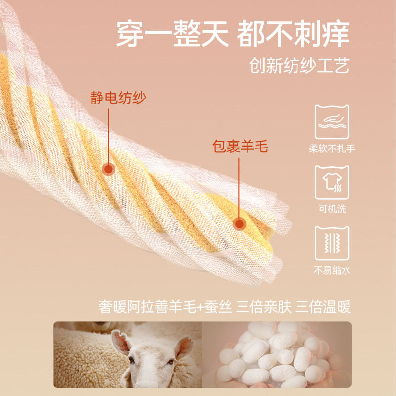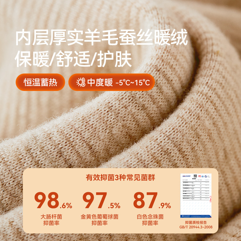 猫人中老年人羊毛保暖内衣男士中高领妈妈秋衣秋裤套装加绒加厚冬