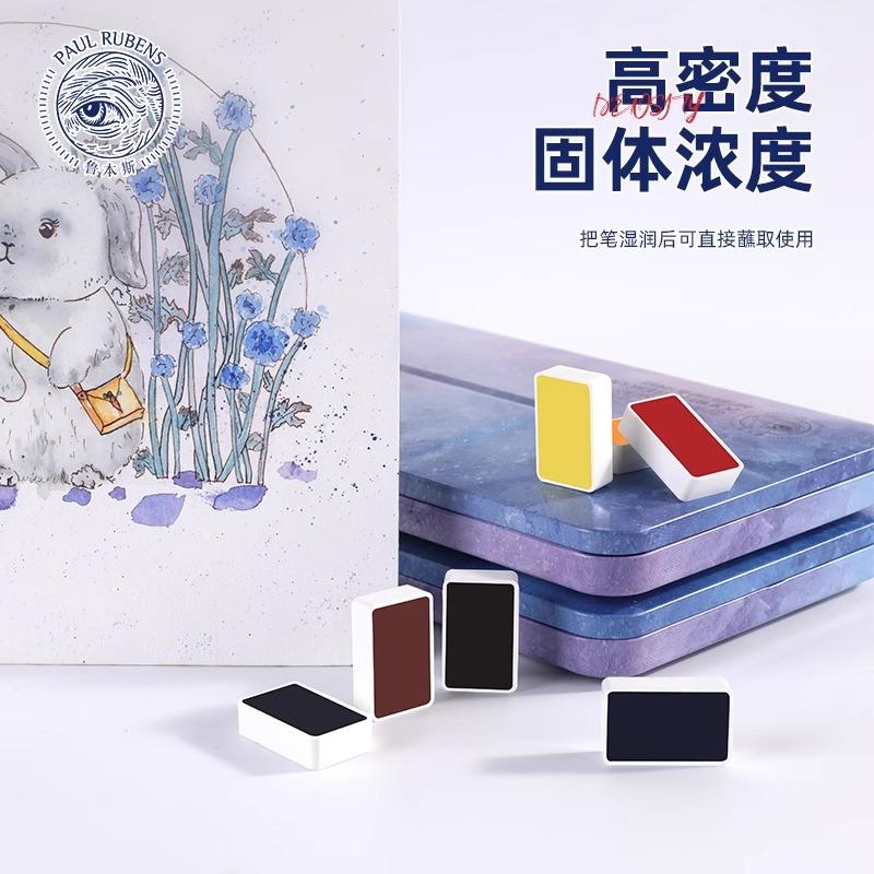鲁本斯俱美卡洛林固体水彩颜料初学者学生美术生大块大磅24色套装