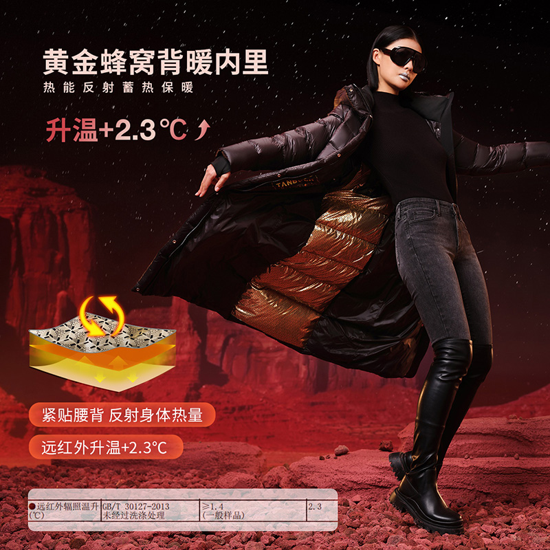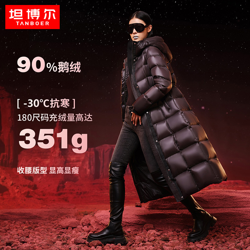 坦博尔时尚鹅绒羽绒服女冬季长款过膝修身百搭高充绒加厚外套