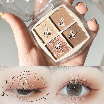 2026四色眼影盘大地色哑光珠光超爆闪粉黑蓝色烟熏新手彩妆初学者