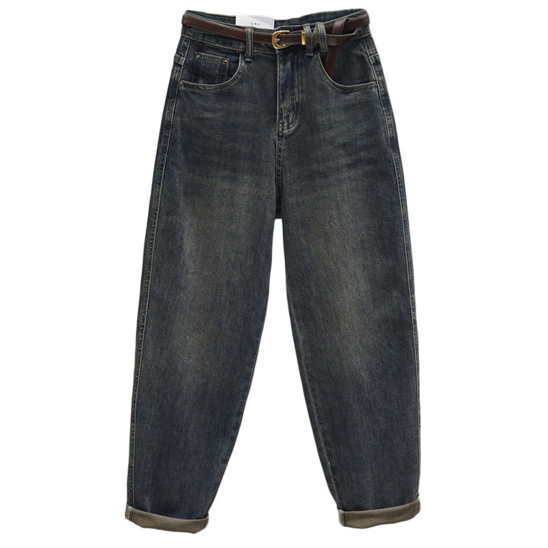 2025春秋高腰牛仔裤女宽松显瘦哈伦裤百搭复古四季萝卜老爹裤潮流