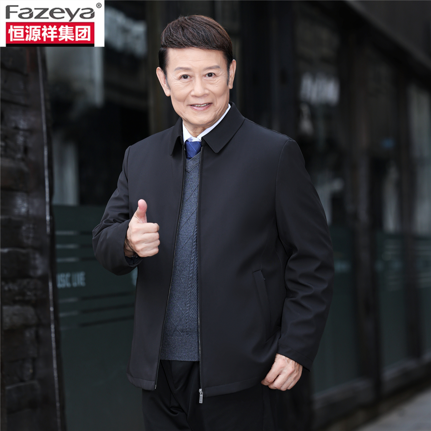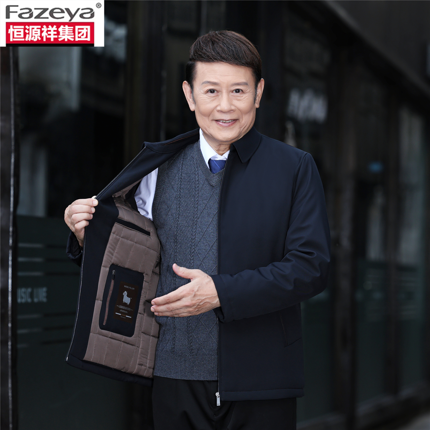 恒源祥彩羊春秋季夹克男款爸爸装中老年棉衣加厚棉服男士冬季外套