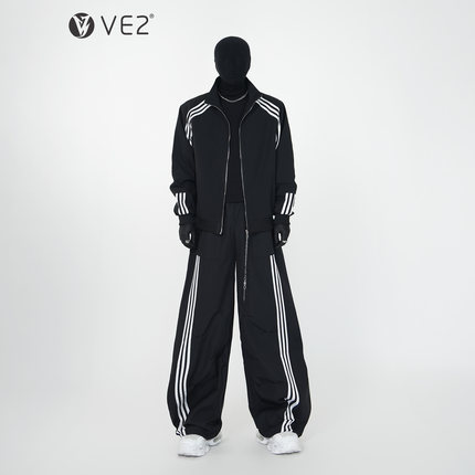VE2 高级感春秋立领防泼水赛车服男三条杠宽松休闲运动套装滑雪服