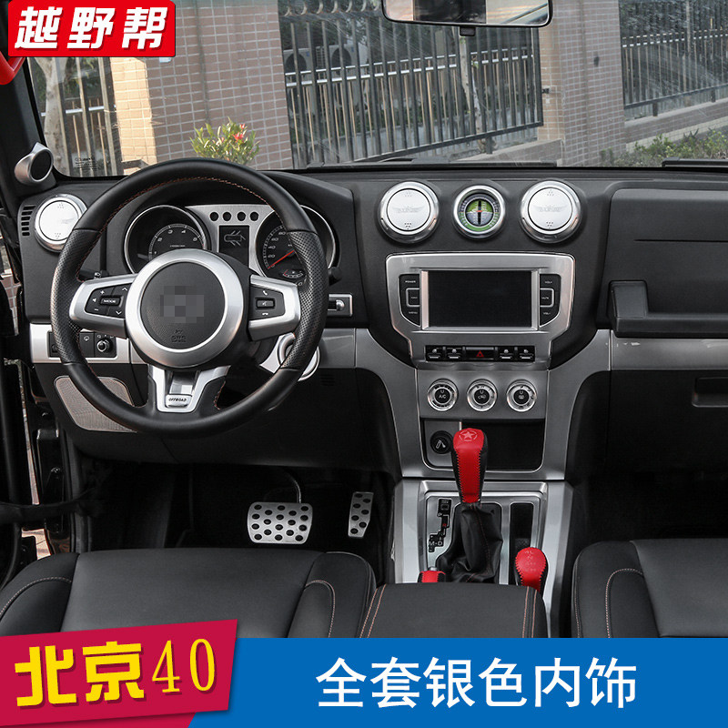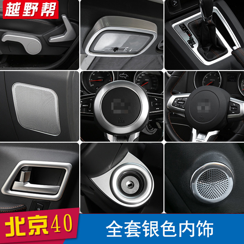 适用北京BJL改装 北汽BJ中控方向盘车标内饰装银色装饰配件
