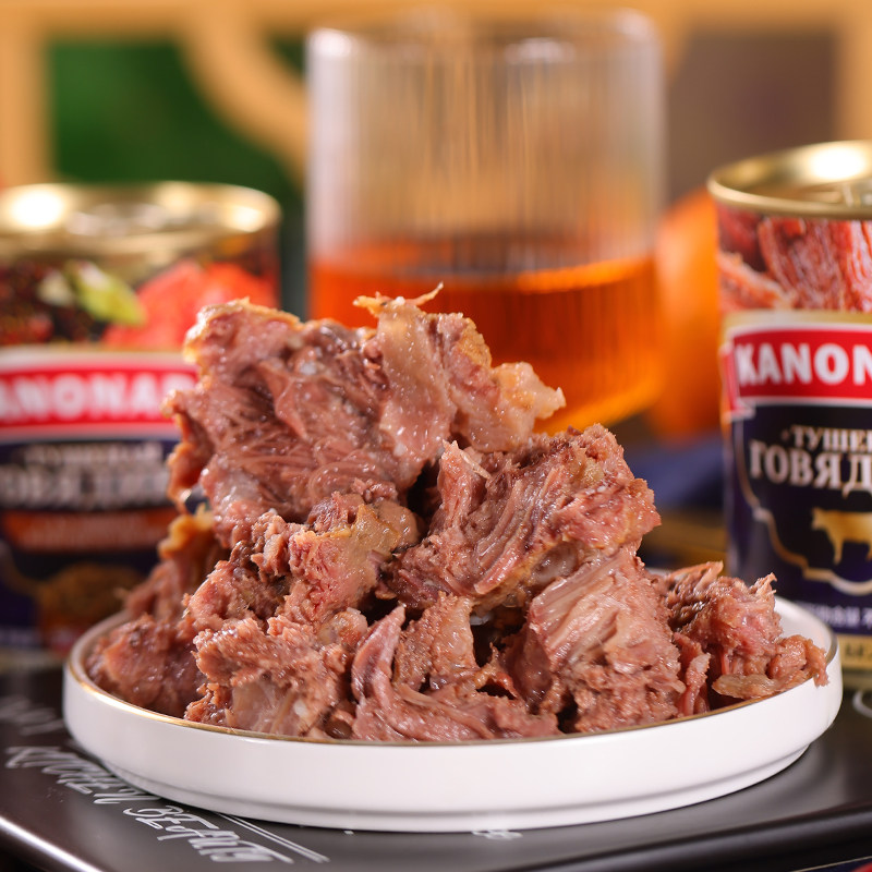 白俄罗斯进口哈里森牌牛肉罐头即食大块肉原味辣椒速食下酒菜