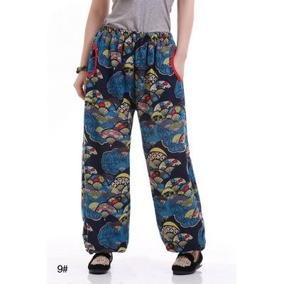 2022夏装口袋大码灯笼裤东北大花布女中式民族风长裤棉麻复古女装
