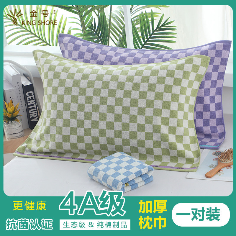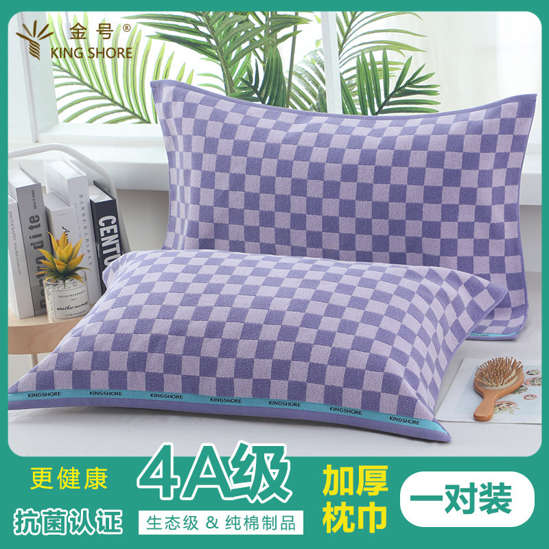 金号4A级高端抗菌枕巾纯棉一对装全棉加大加厚情侣单人全包枕头巾
