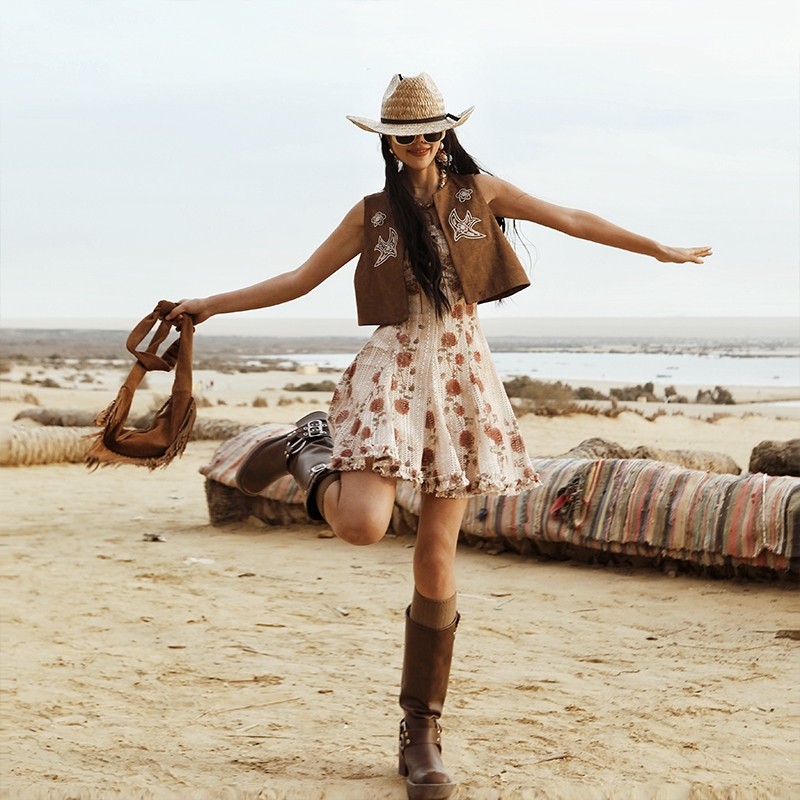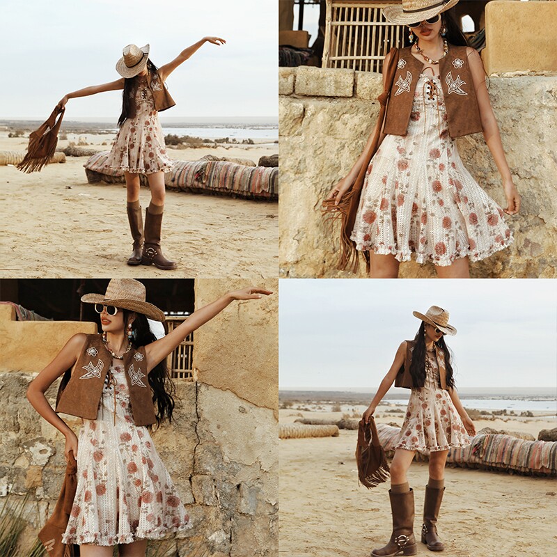 复古纯欲辣妹风蕾丝印花吊带短裙