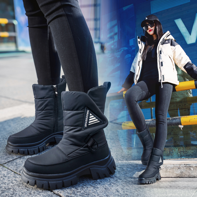 女中筒靴冬季加厚保暖厚底棉靴显高显瘦女雪地靴时尚百搭女靴棉鞋