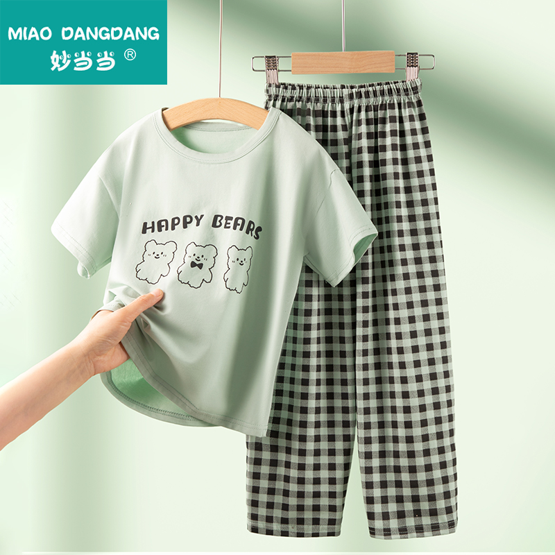 妙当当儿童睡衣男童夏季纯棉女童中大童家居服短袖套装夏天空调服