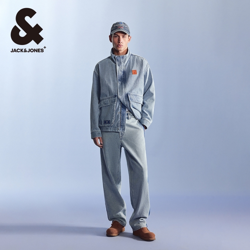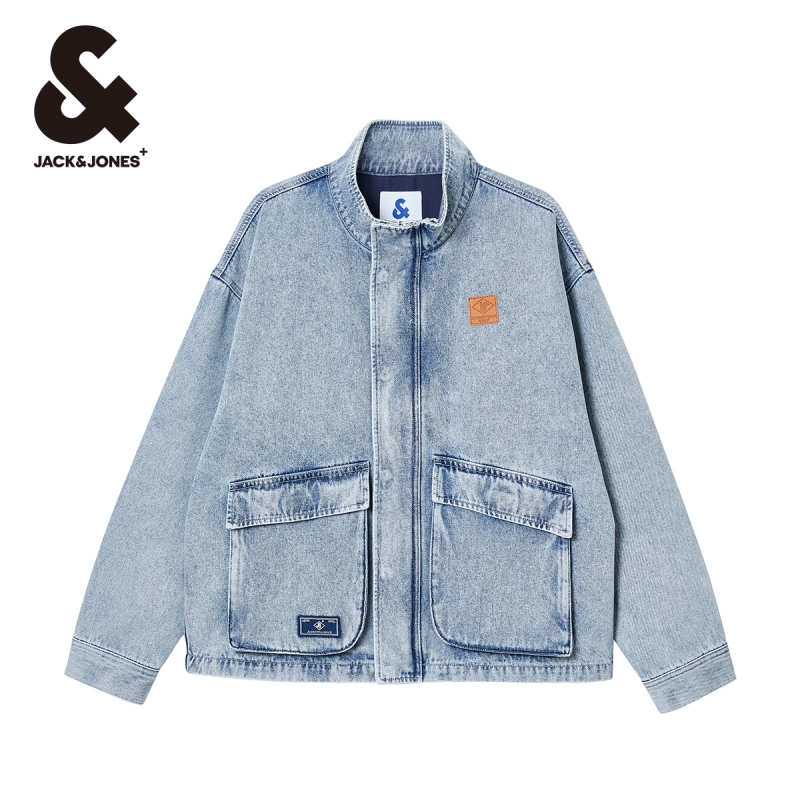杰克琼斯男装夹克 外套春季新款水洗宽松直筒拉链立领牛仔男款