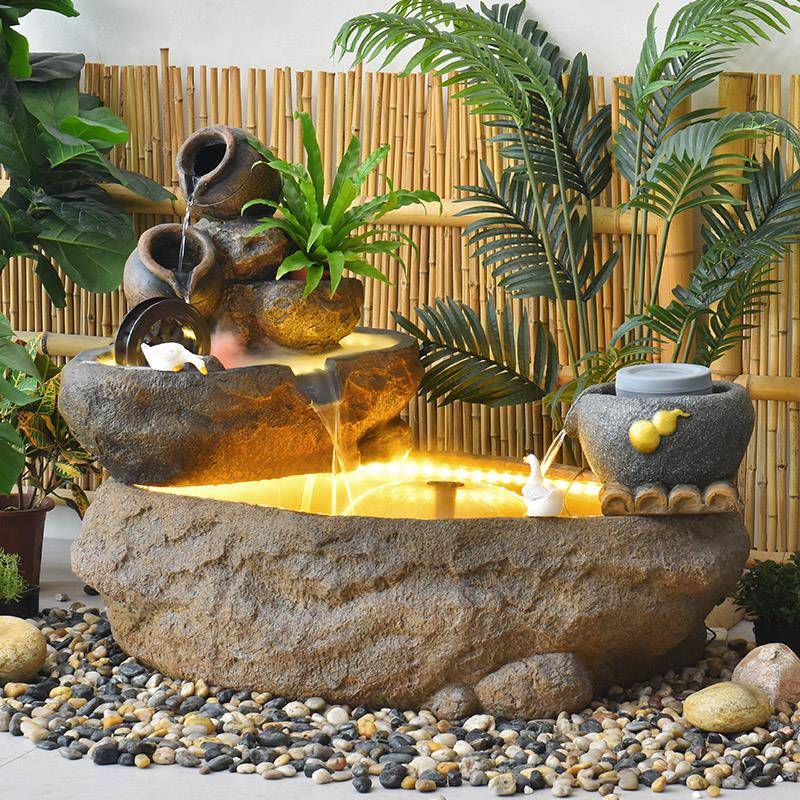 田园花园庭院户外露台假山流水喷泉鱼池水池鱼缸阳台装饰造景摆件