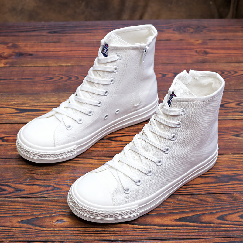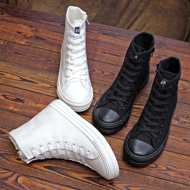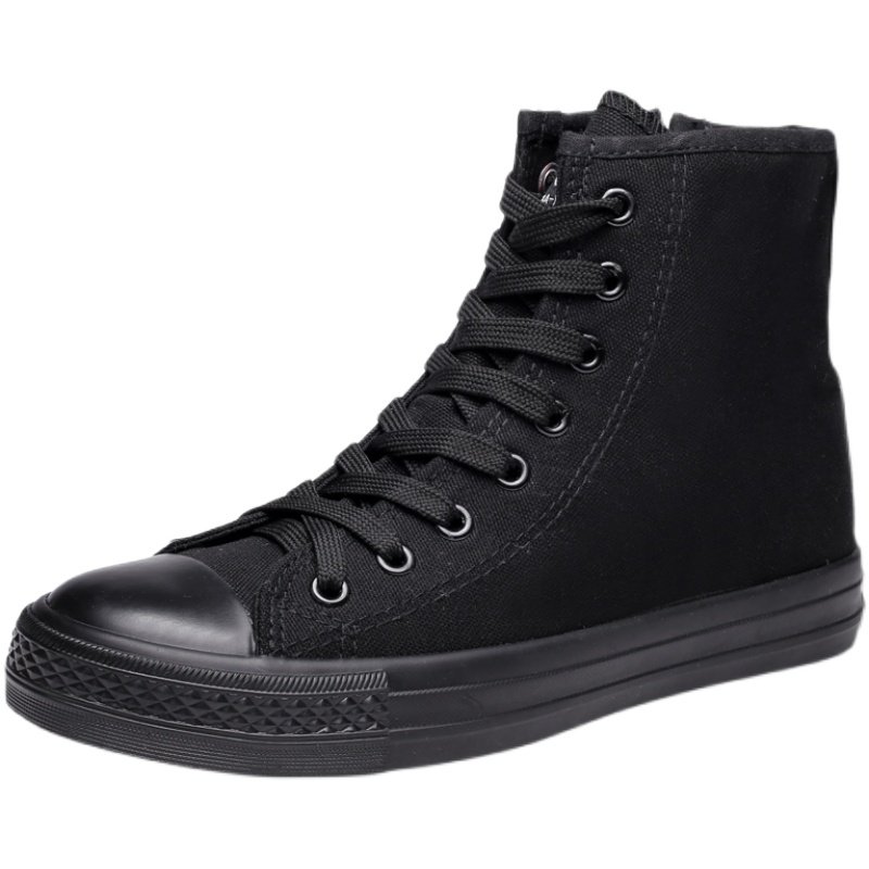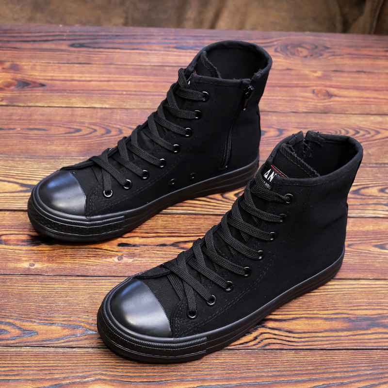 远步全黑色帆布鞋女侧拉链高帮鞋ulzzang平底工作鞋百搭休闲鞋潮