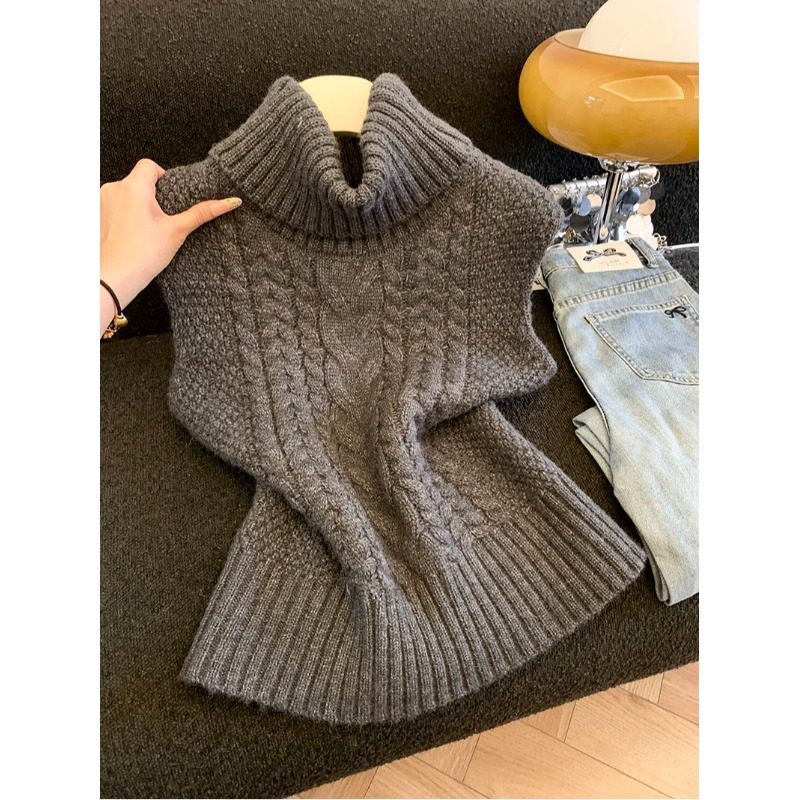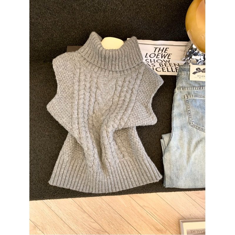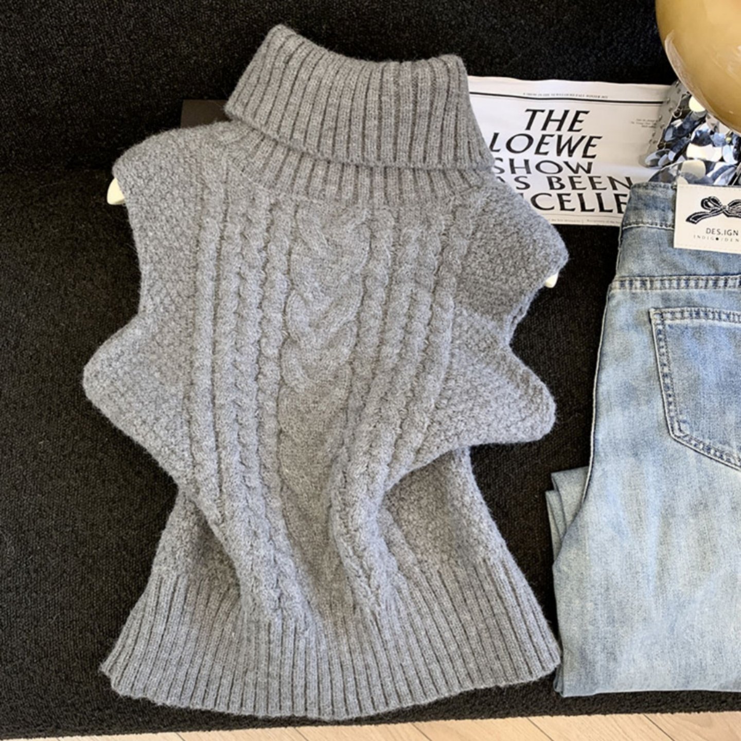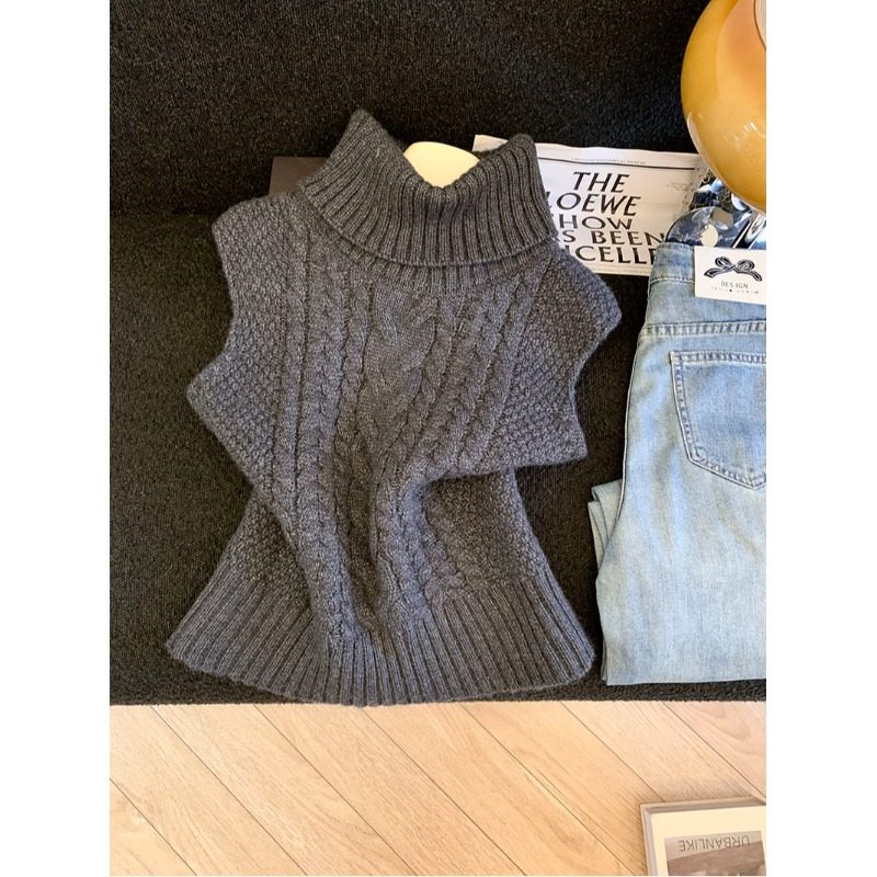 韩系灰色高领麻花针织马甲女秋冬季新款叠穿显瘦软糯毛衣坎肩背心