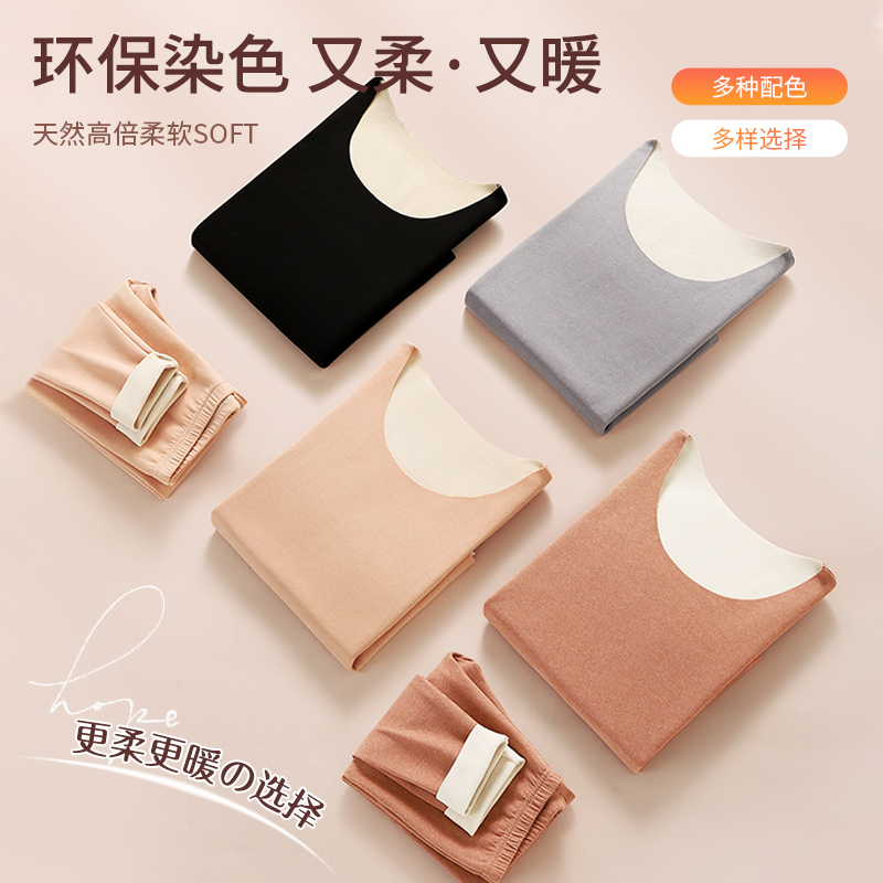 无痕保暖内衣女士款加绒加厚发热打底衫秋冬季修身秋衣秋裤套装女