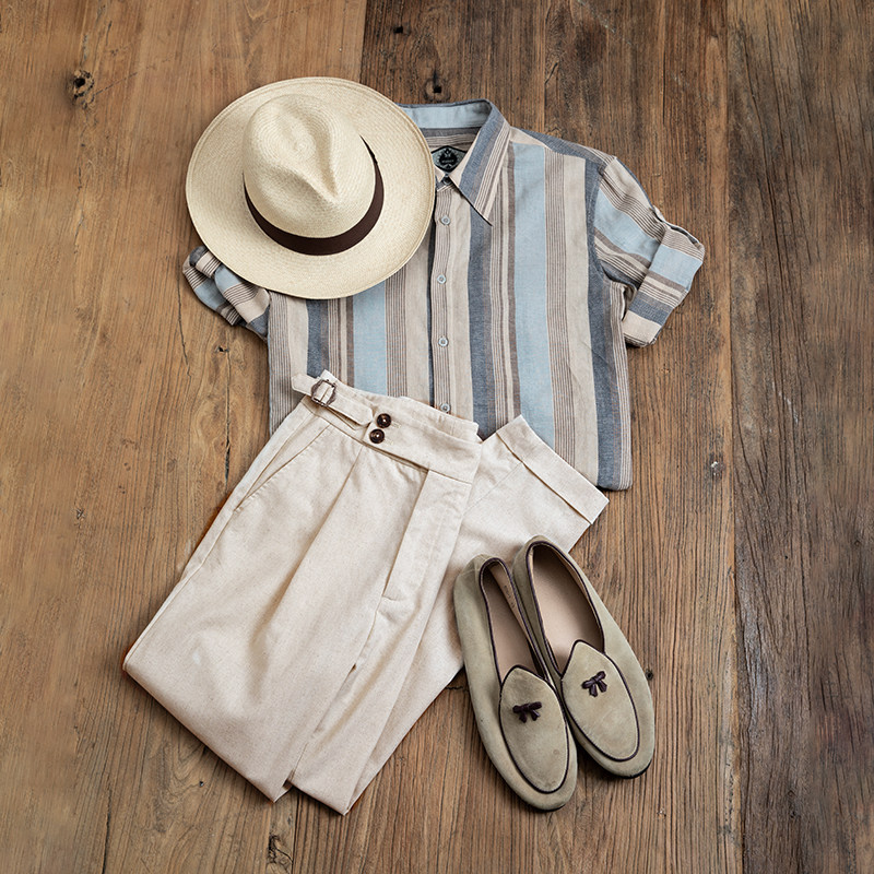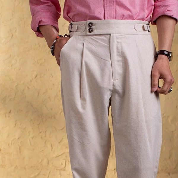 SOARIN英伦风复古那不勒斯西裤男夏季棉麻商务休闲修身锥形九分裤