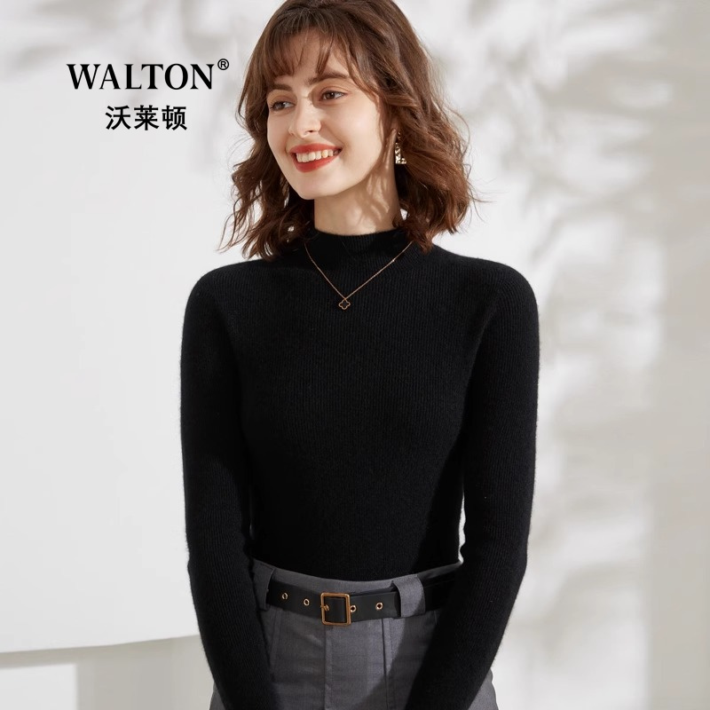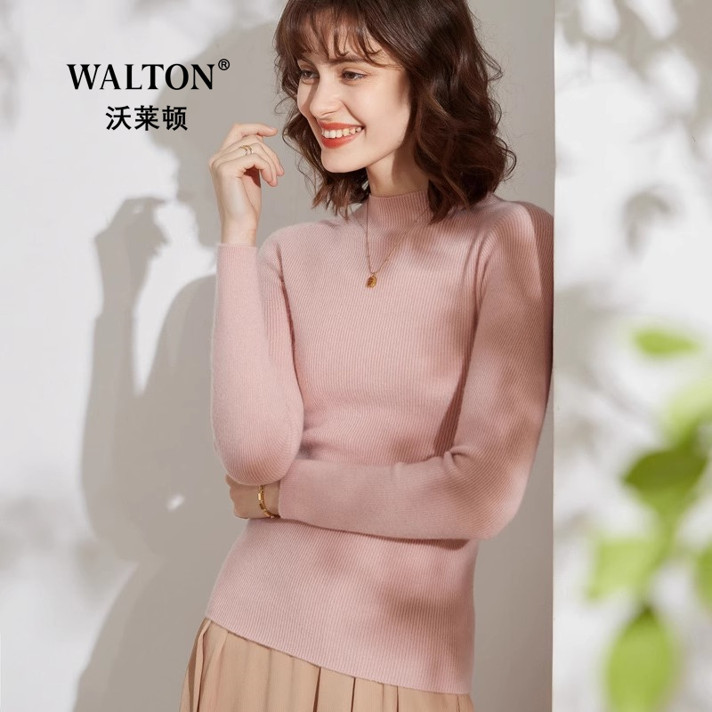 鄂尔多斯市100山羊绒衫2024秋冬款修身半高领羊绒衫针织打底衫女