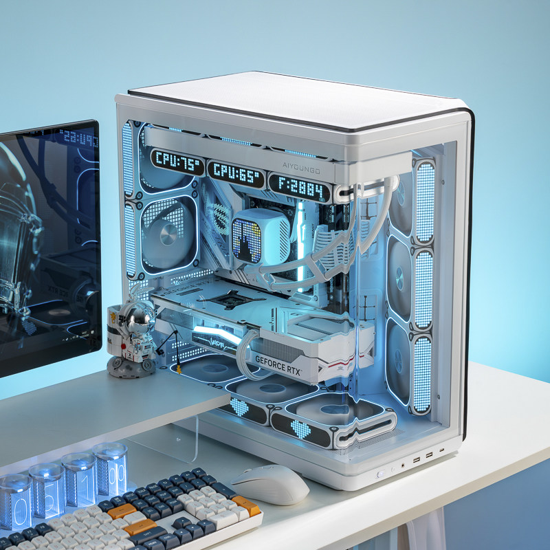 爱国者星璨辰机箱副屏曲面玻璃海景房ATX电脑机箱台式主机360水冷