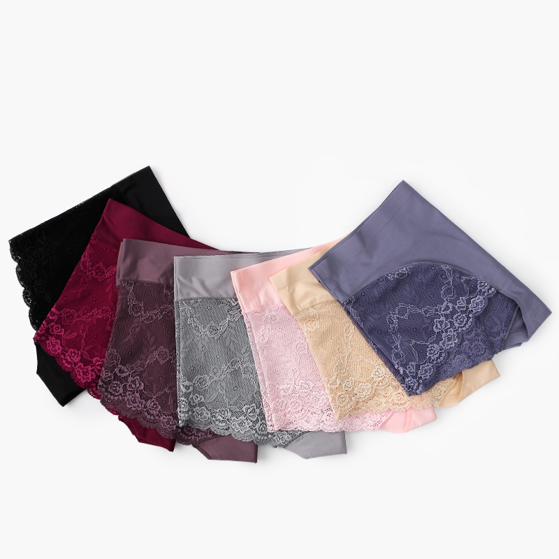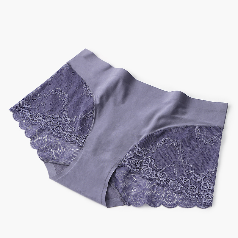 三条一片式无痕内裤女士冰丝质感性感蕾丝纯棉裆低腰中腰三角裤头