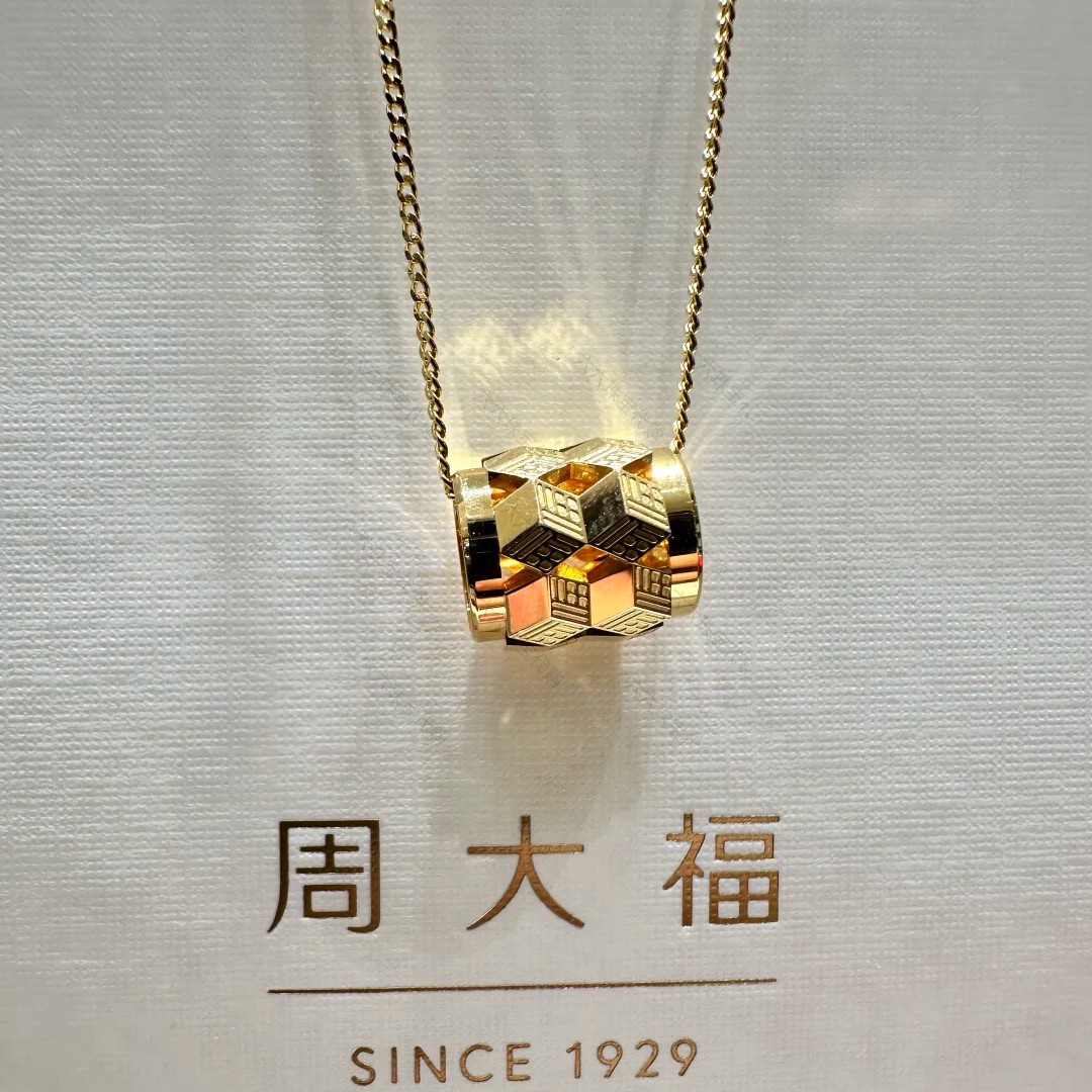 周大福代购 传福系列黄金立体福字足金项链套链女 新款正品R39180