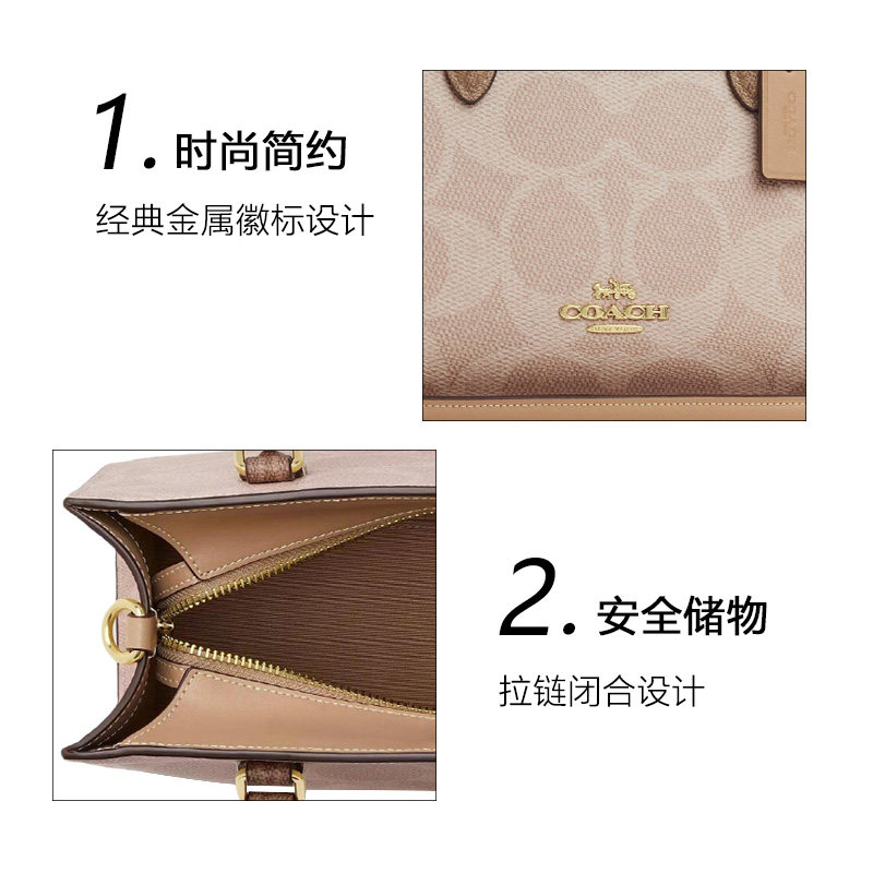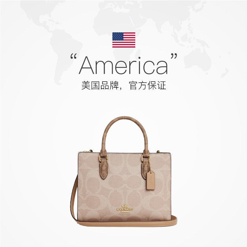 【自营】COACH/蔻驰女包经典印花金属徽标手提包斜挎单肩包托特包